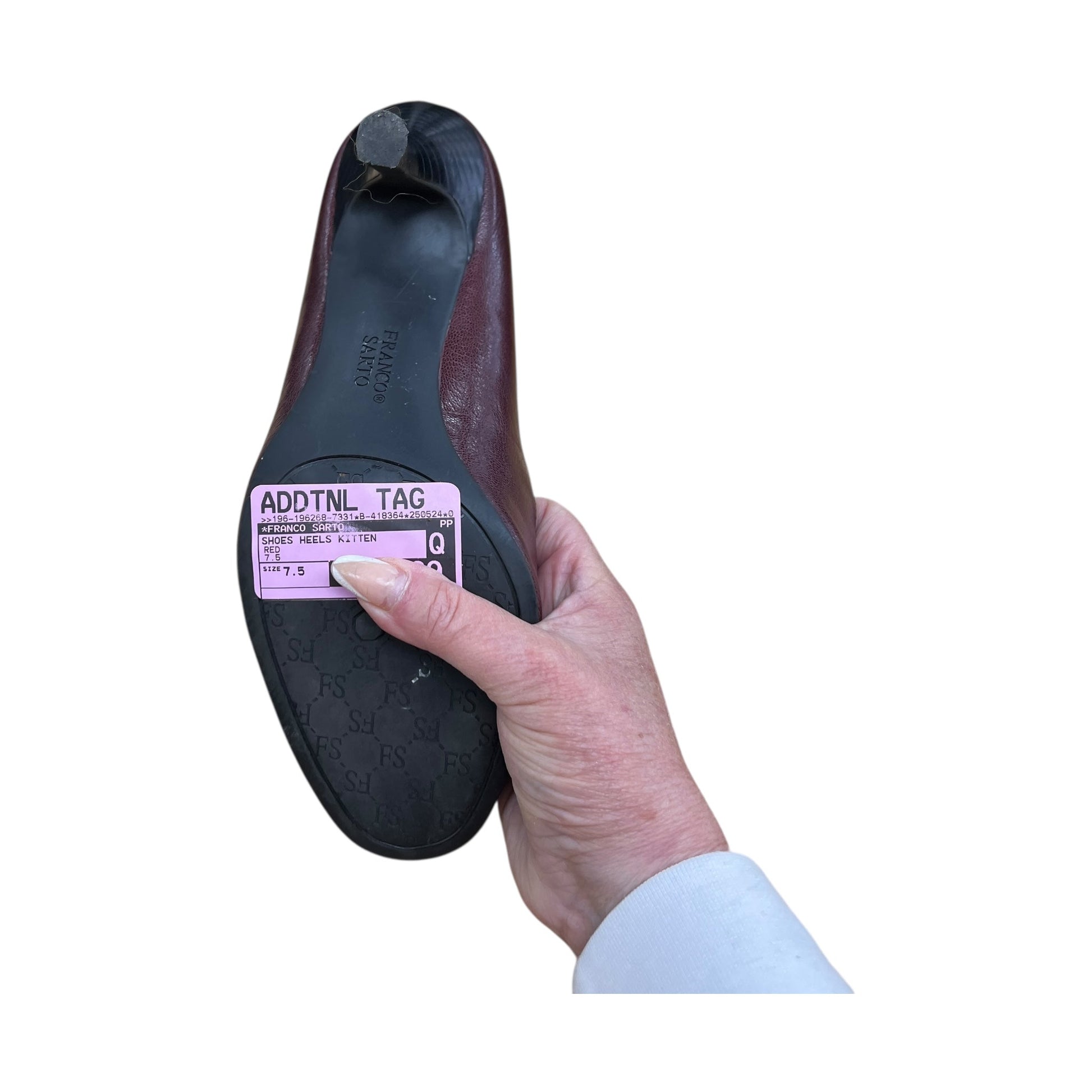 Step into confidence with Franco Sarto's Red Kitten Heels in size 7.5. Add a pop of color to any outfit.