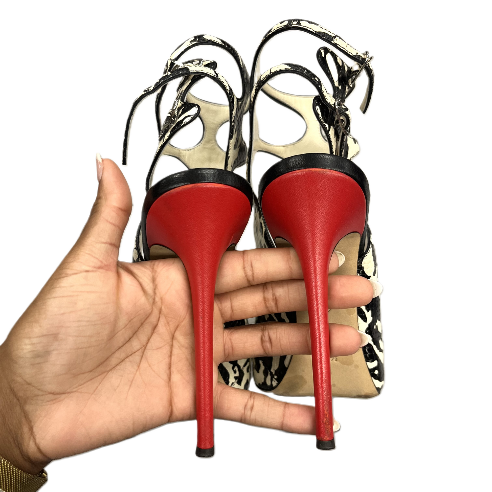 Shoes Designer Stiletto By Giuseppe Zanotti In Black & White, Size: 9
