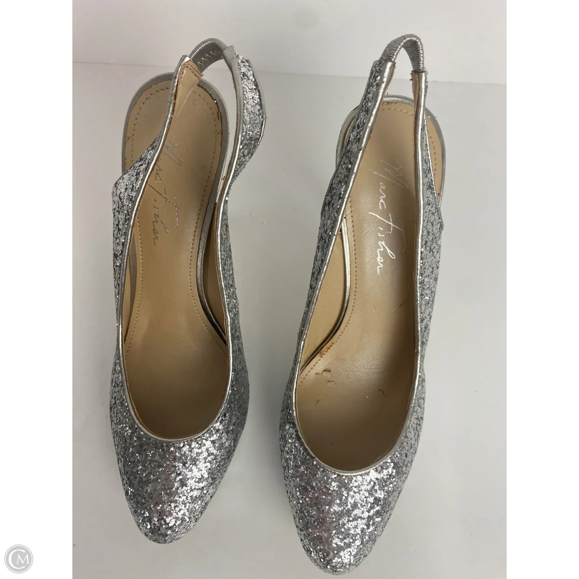 Shoes Heels Stiletto By Marc Fisher In Silver, Size: 9