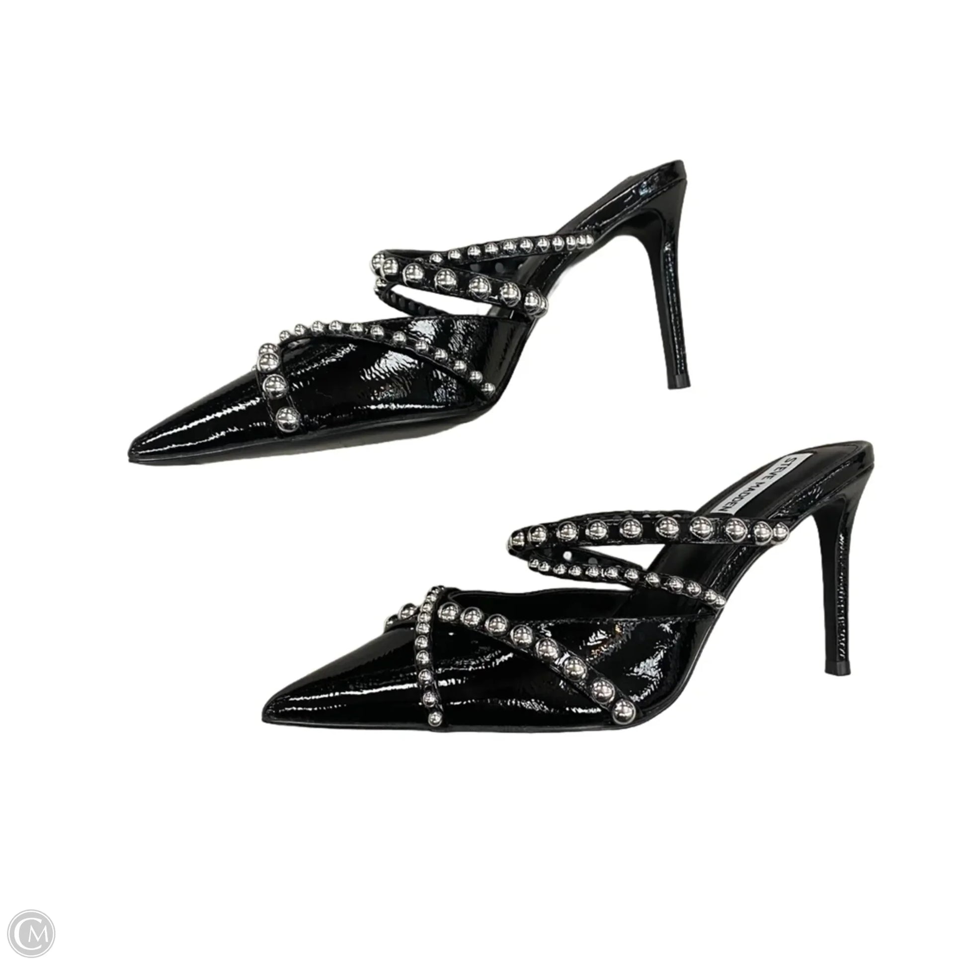 Shoes Heels Stiletto By Steve Madden In Black & Silver, Size: 9.5