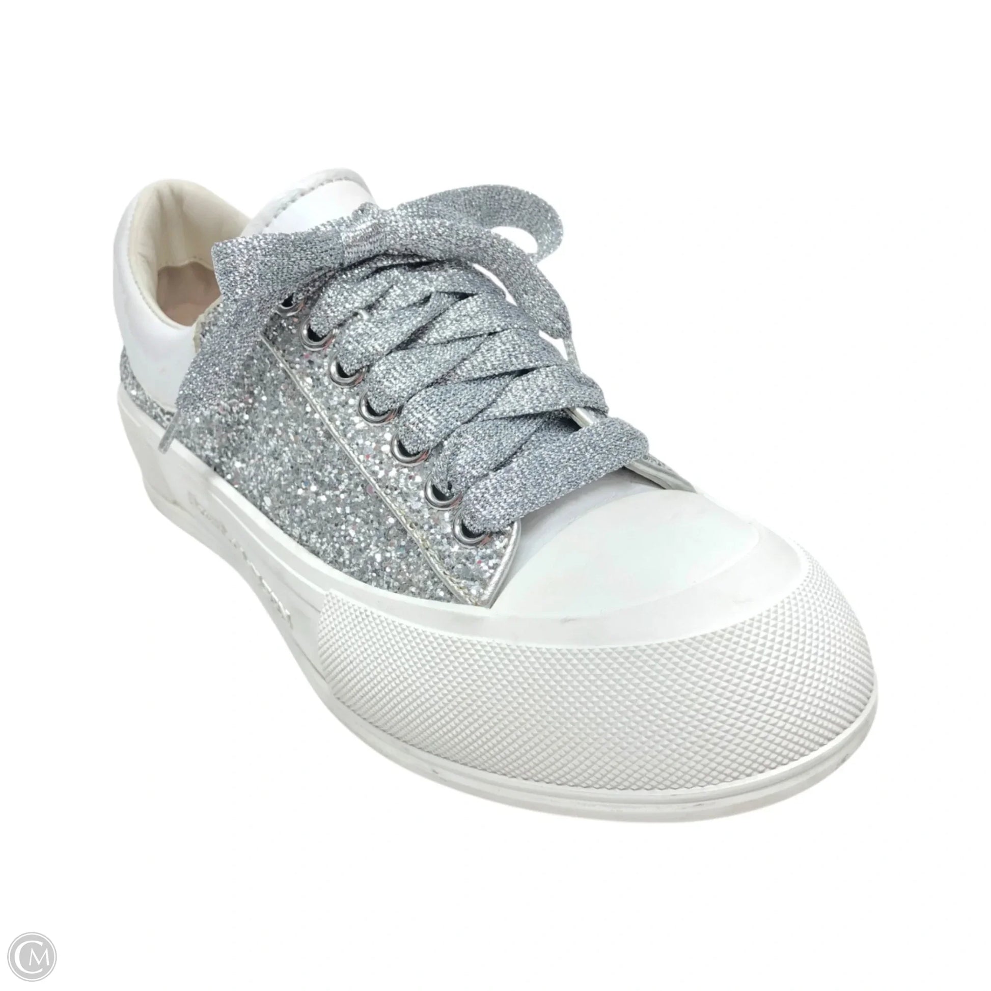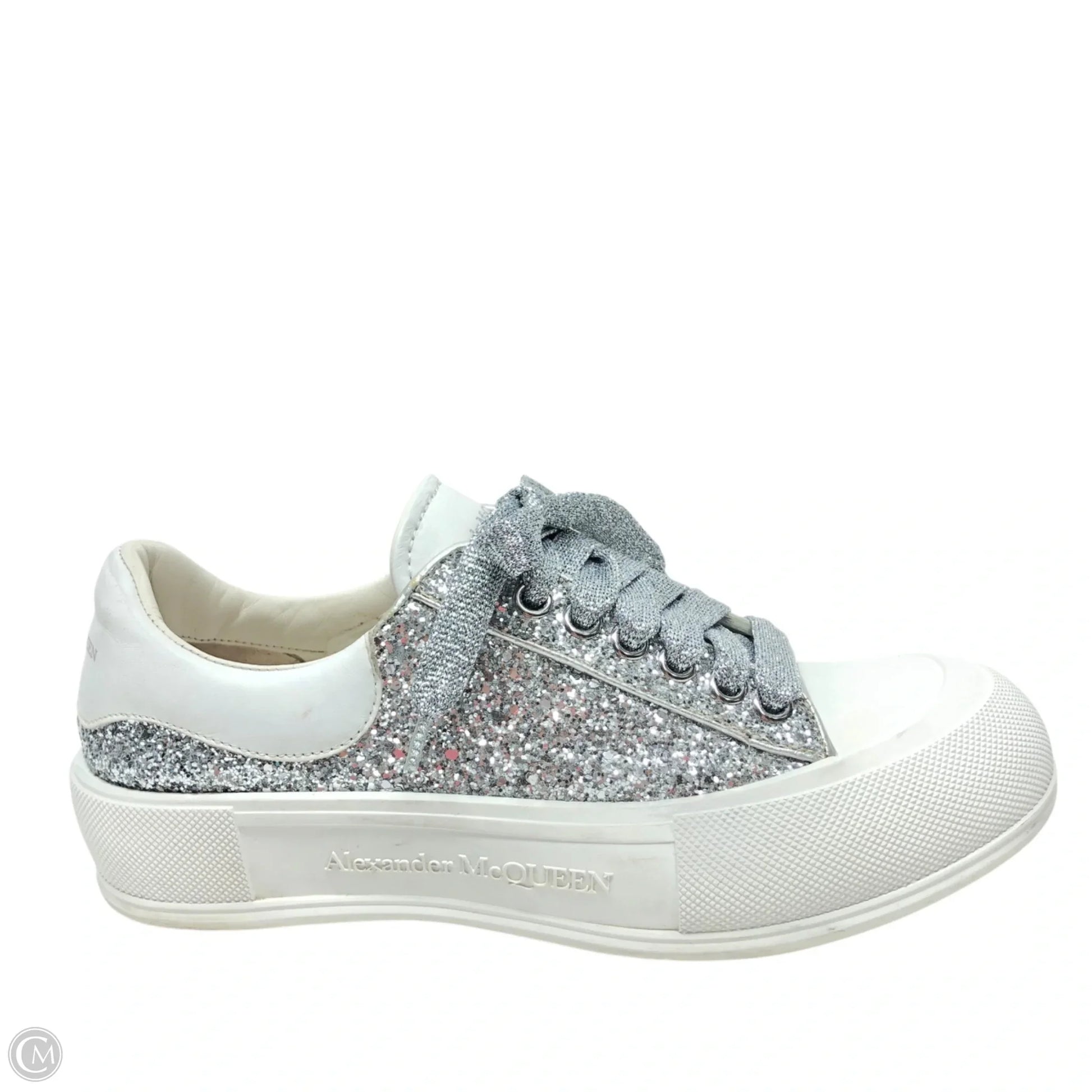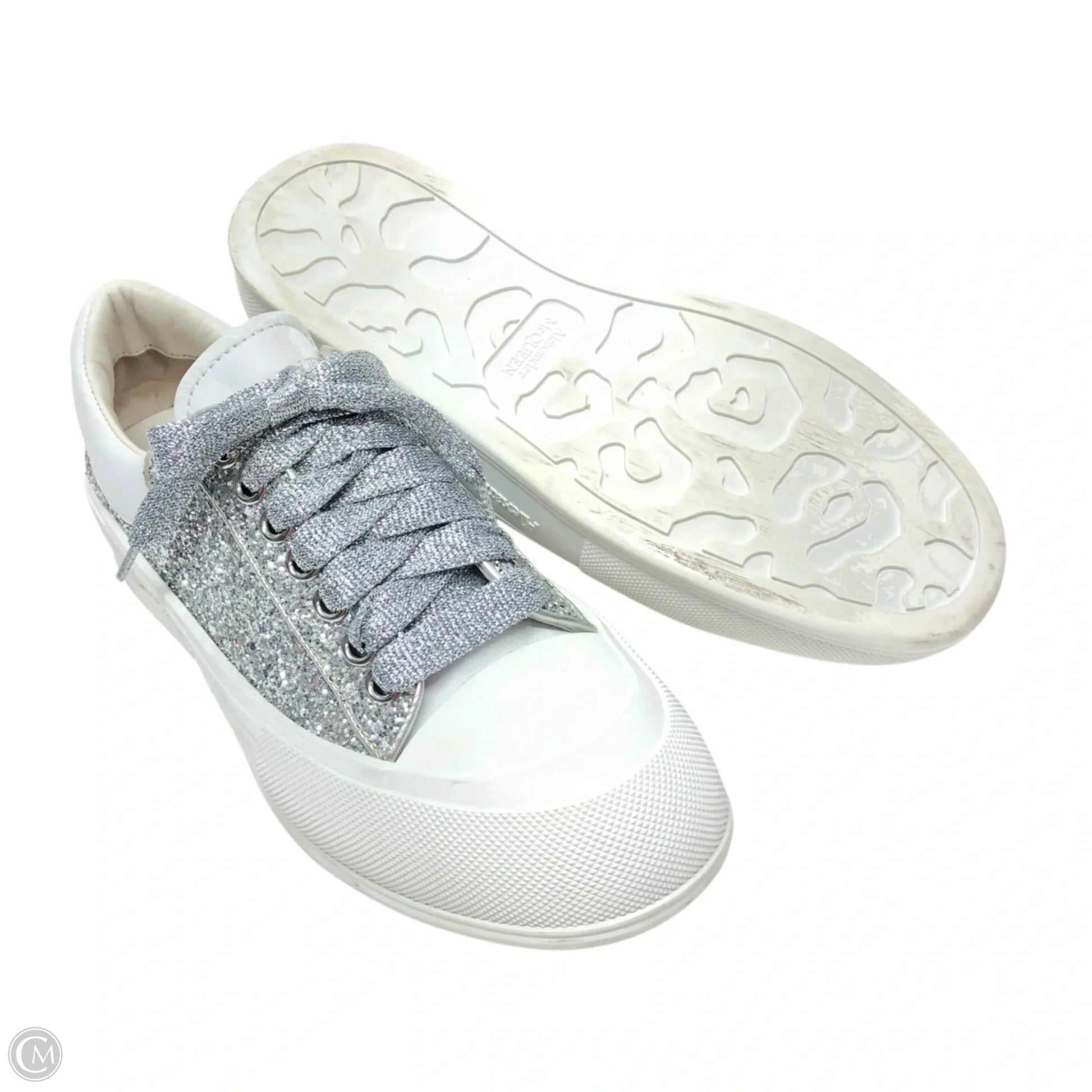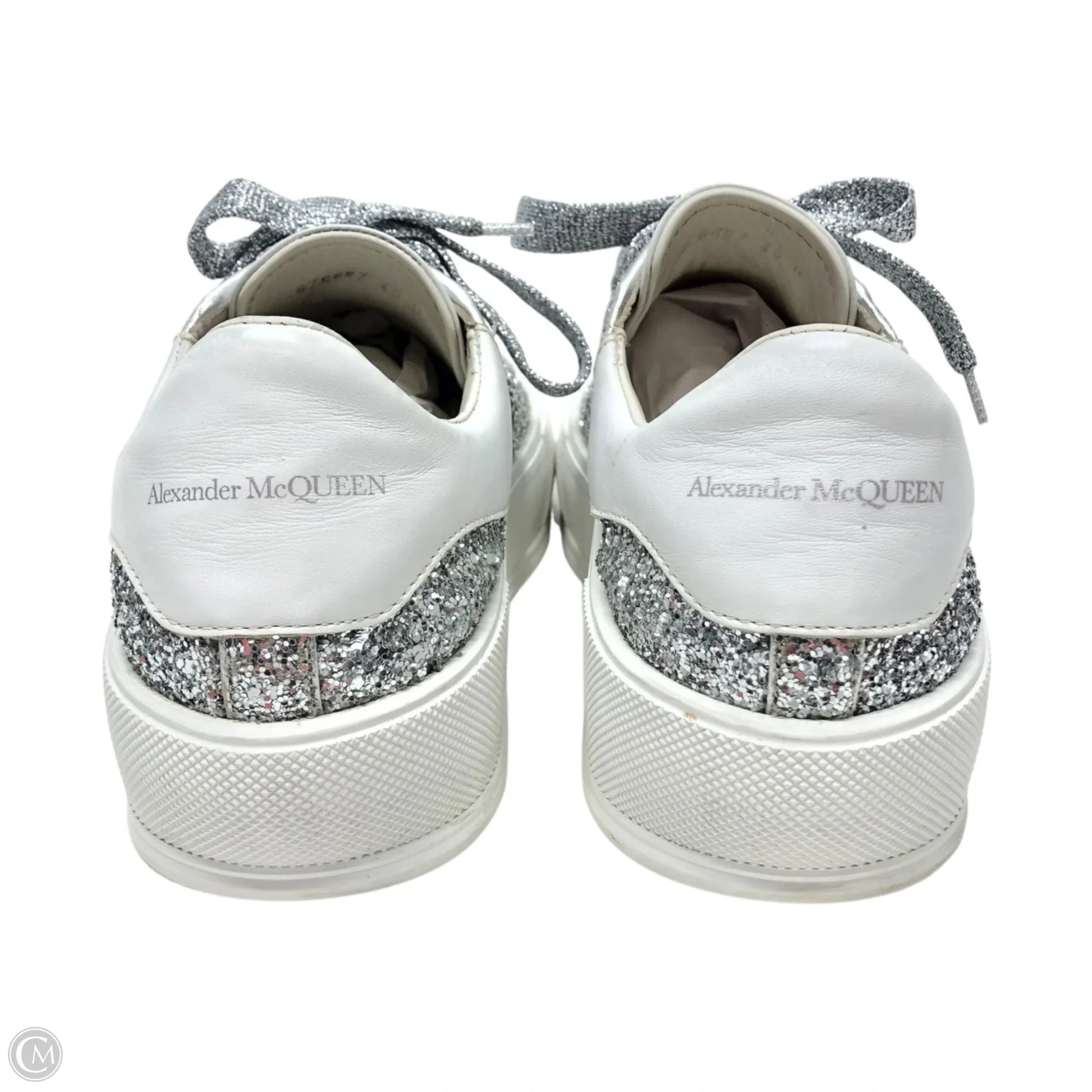Shoes Luxury Designer By Alexander Mcqueen In Silver & White, Size: 9.5