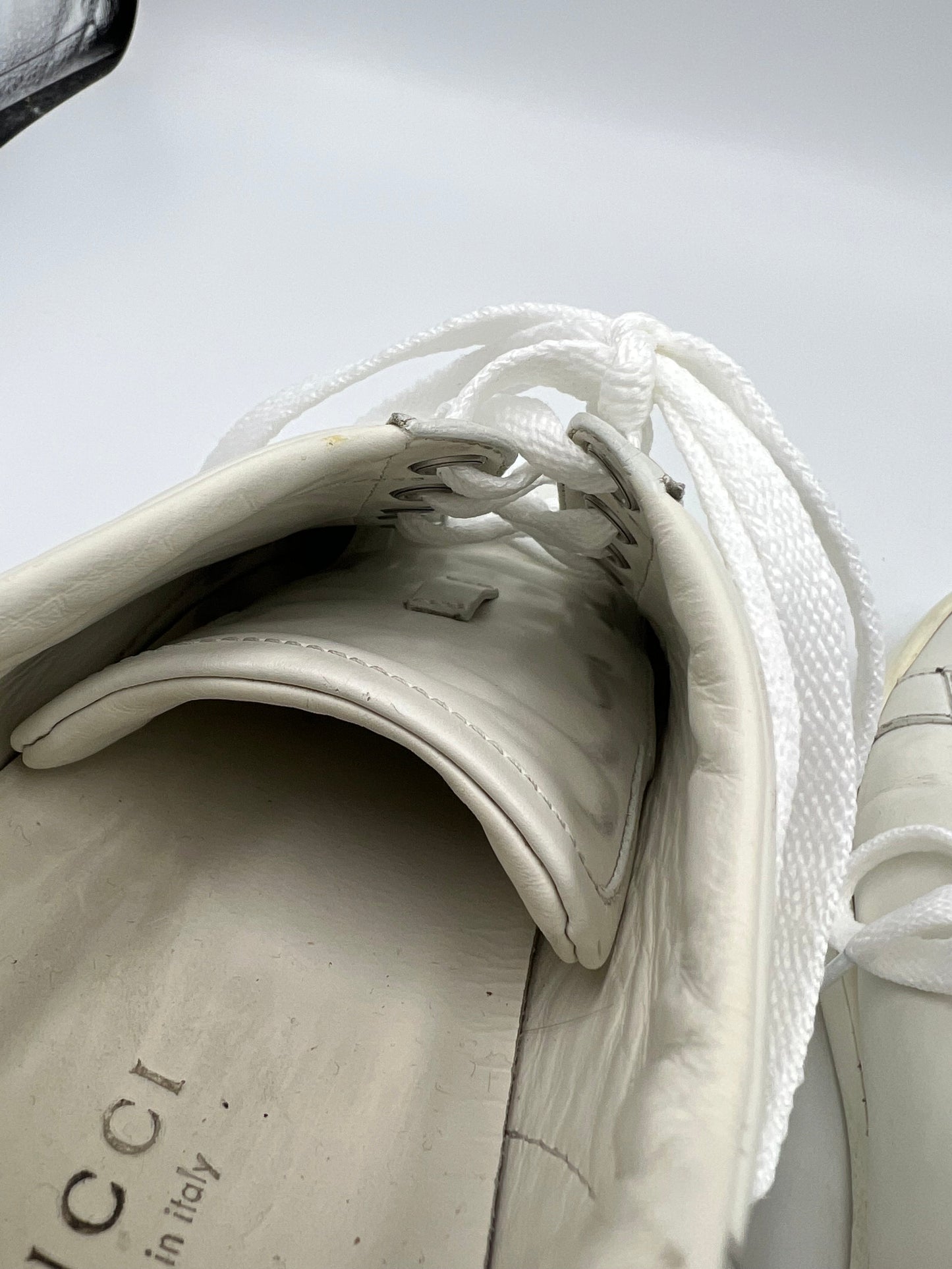Other Info: WHITE INTERLOCKING G ACE COW TOPS SZ 37.5