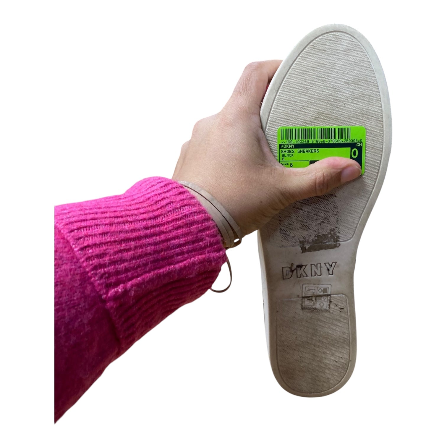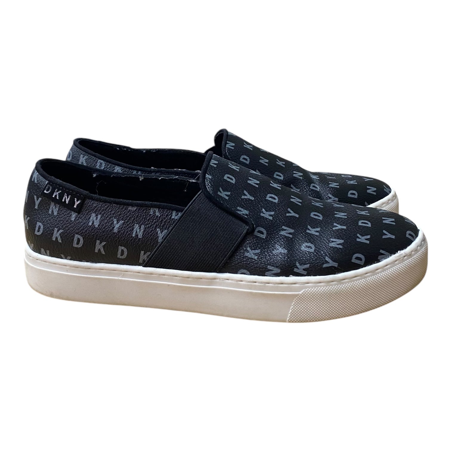 Wrap your feet in chic comfort with DKNY's black sneakers in size 8. Luxuriously cozy, these shoes exude style and confidence effortlessly. Walk with grace and charm.