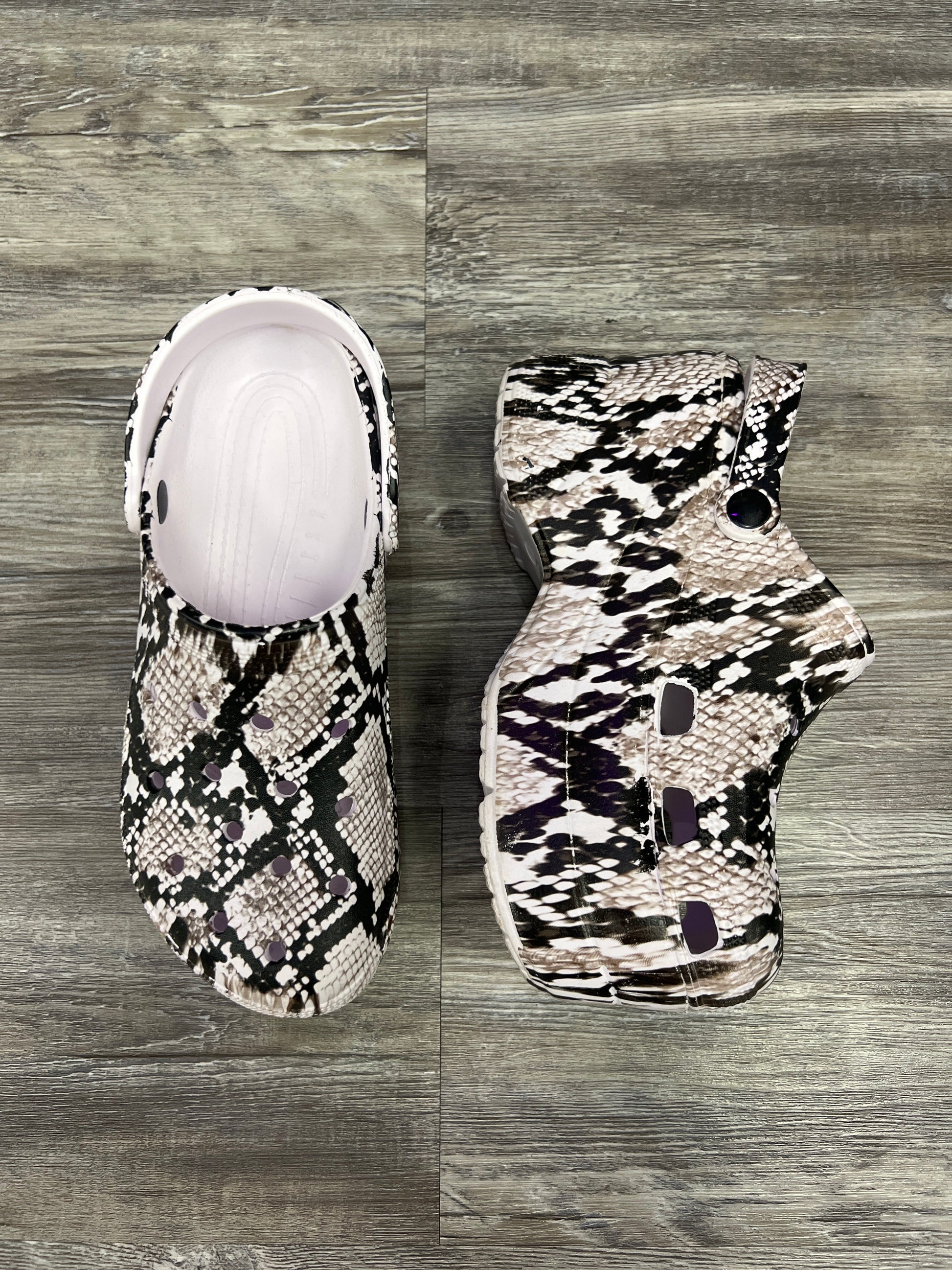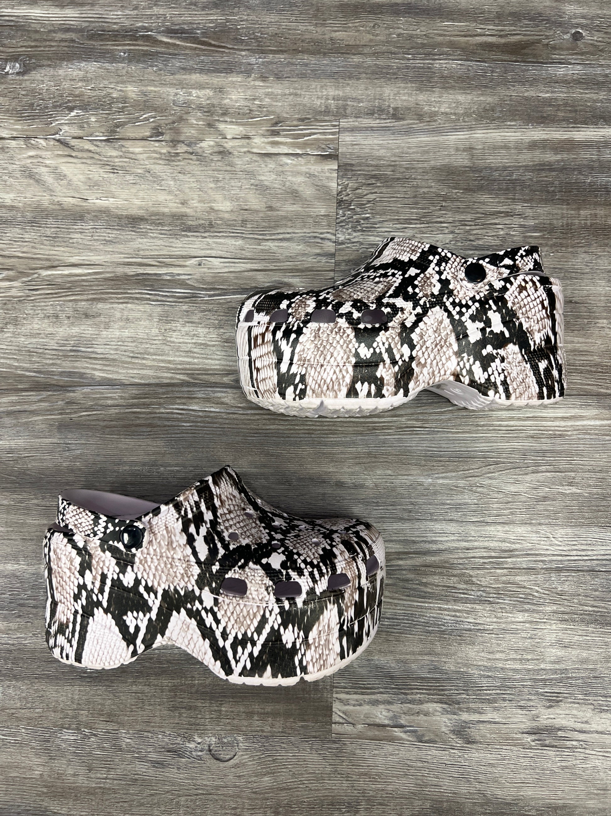 Snakeskin Print Shoes Heels Platform Crocs, Size 8.5