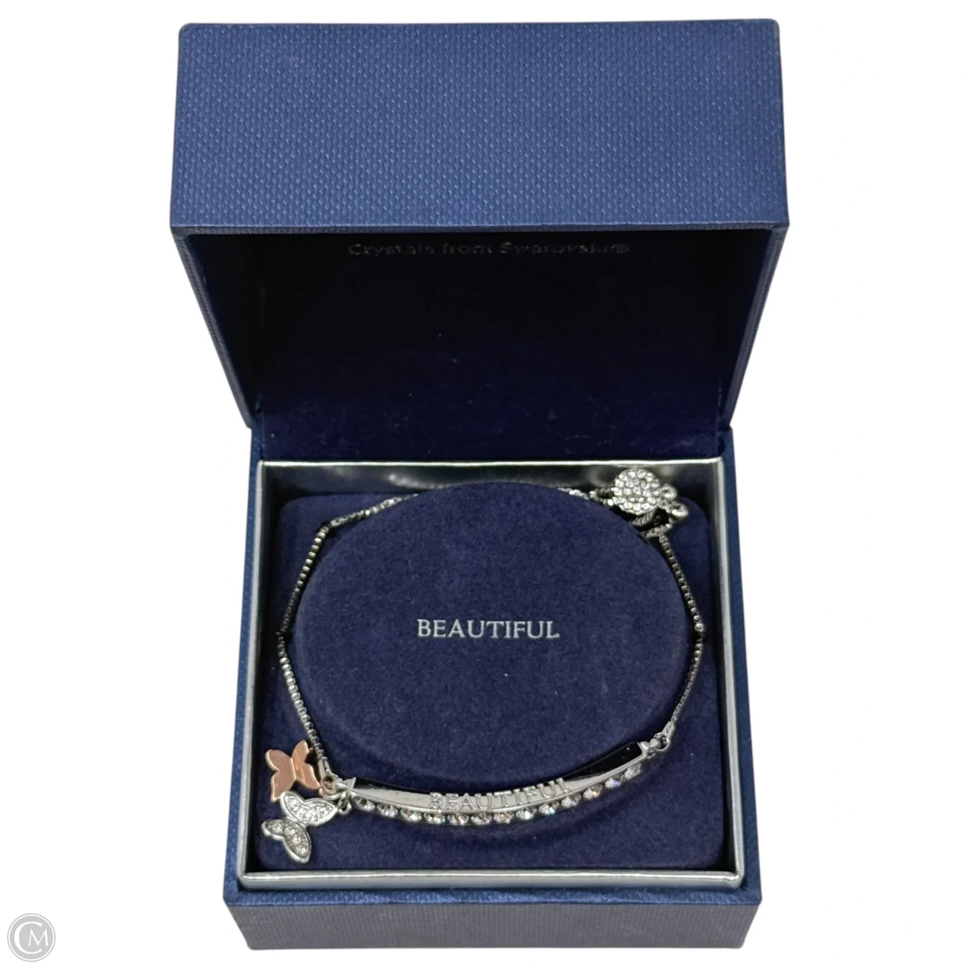 Sterling Silver & Swarovski Crystal Adjustable Butterfly Bar Bracelet By Brilliance
