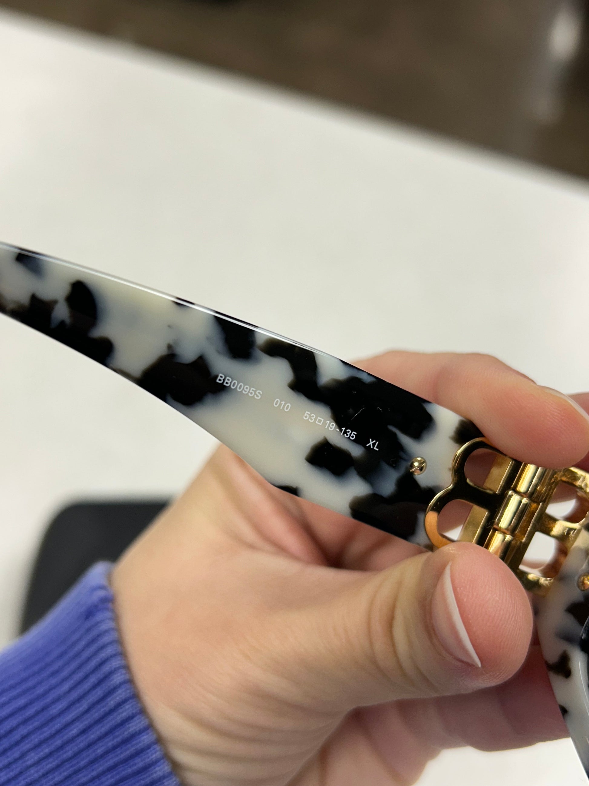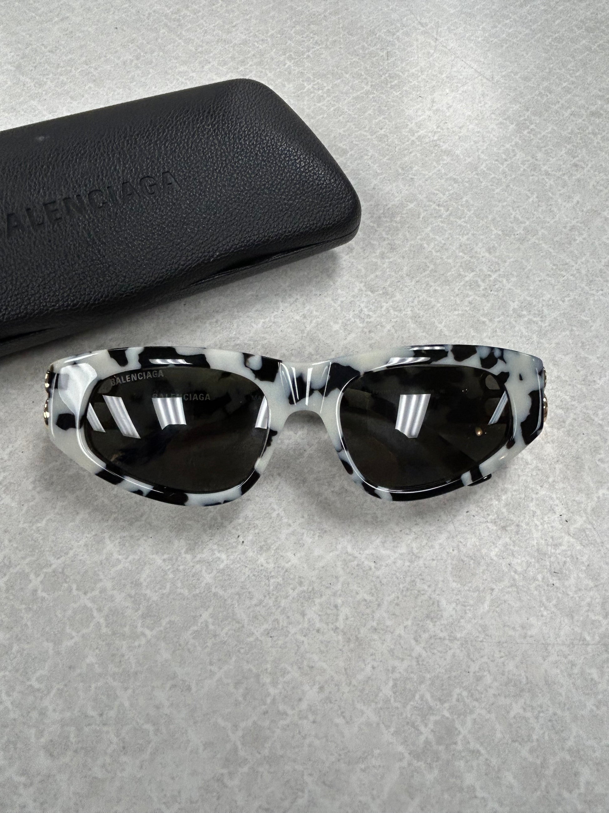 Step out in style with these Balenciaga Luxury Designer Sunglasses in sleek black and white. The perfect blend of sophistication and edge for a fashion-forward look.