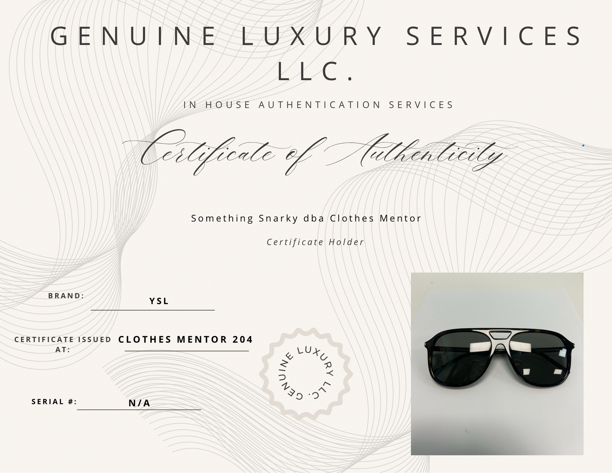 Other Info: YSL 58 MM PILOT SUNGLASSES - RETAIL $228