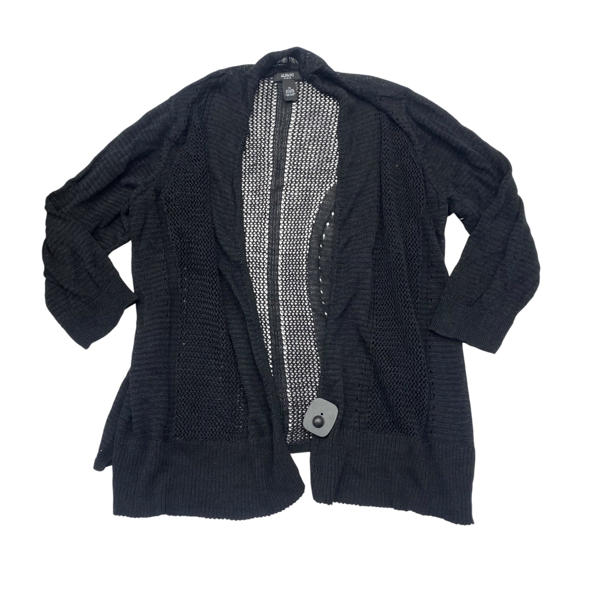 Wrap yourself in cozy chic with this black sweater cardigan by Alfani in size 1X. The perfect blend of comfort and style for effortless everyday fashion.
