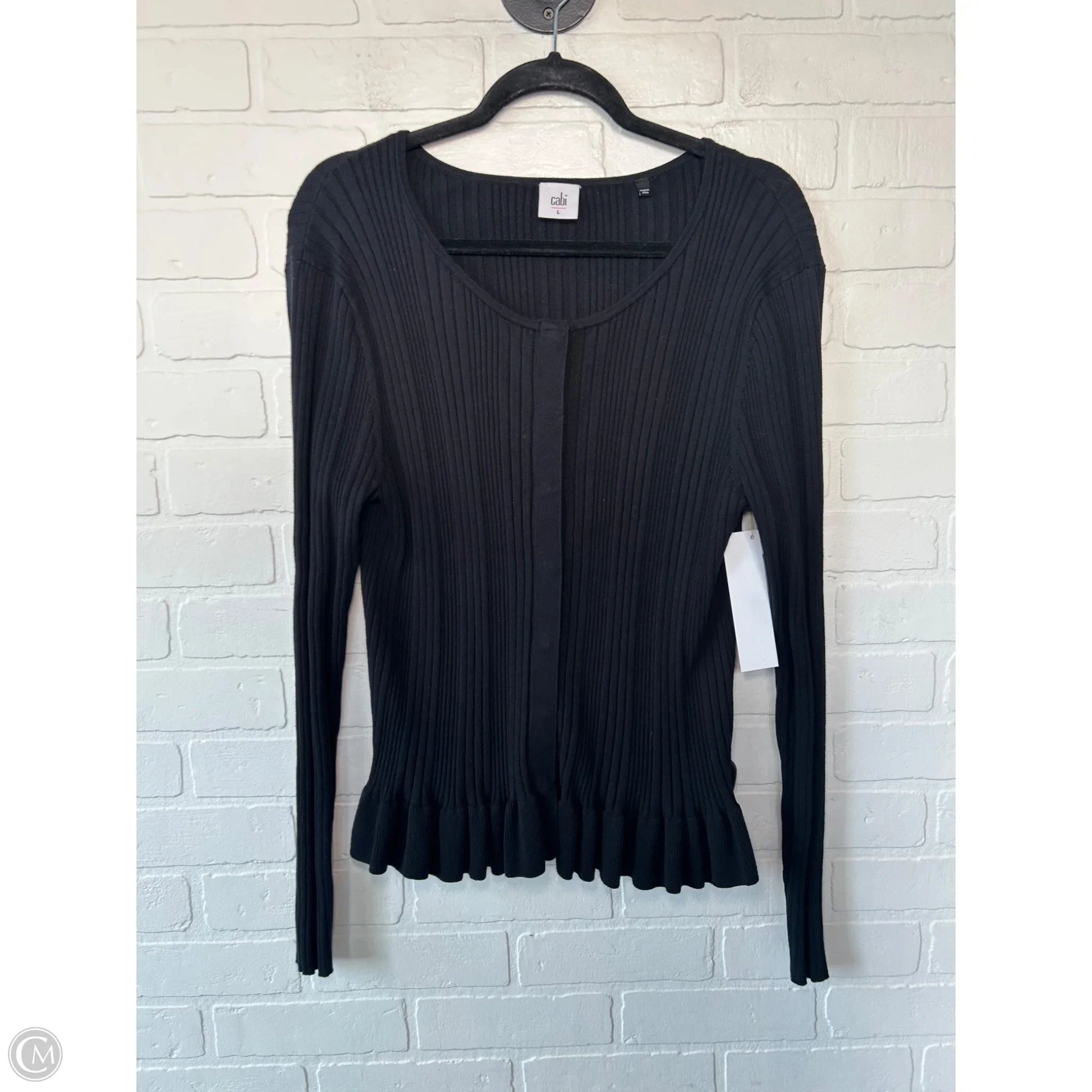 Elegant Cabi black sweater cardigan in size L. Luxurious fabric, timeless style. A must-have staple.