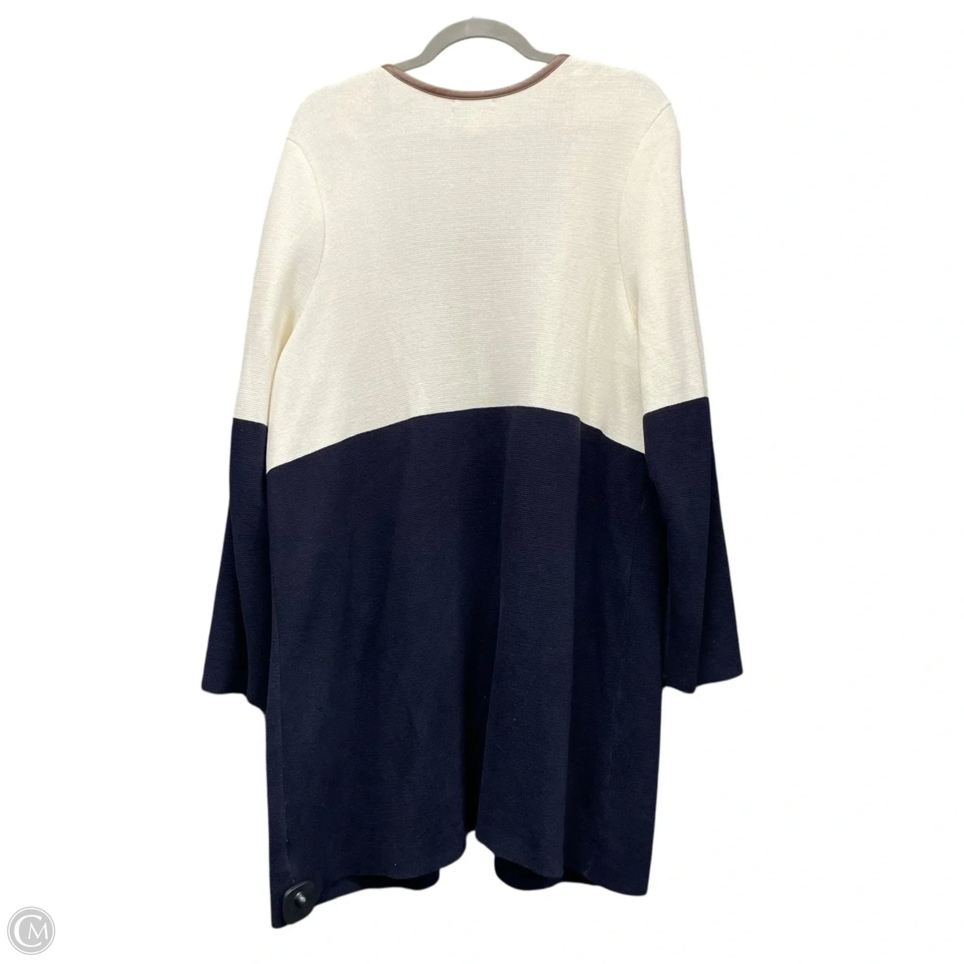 Sweater Cardigan By Charter Club In Blue & Cream, Size: 1x