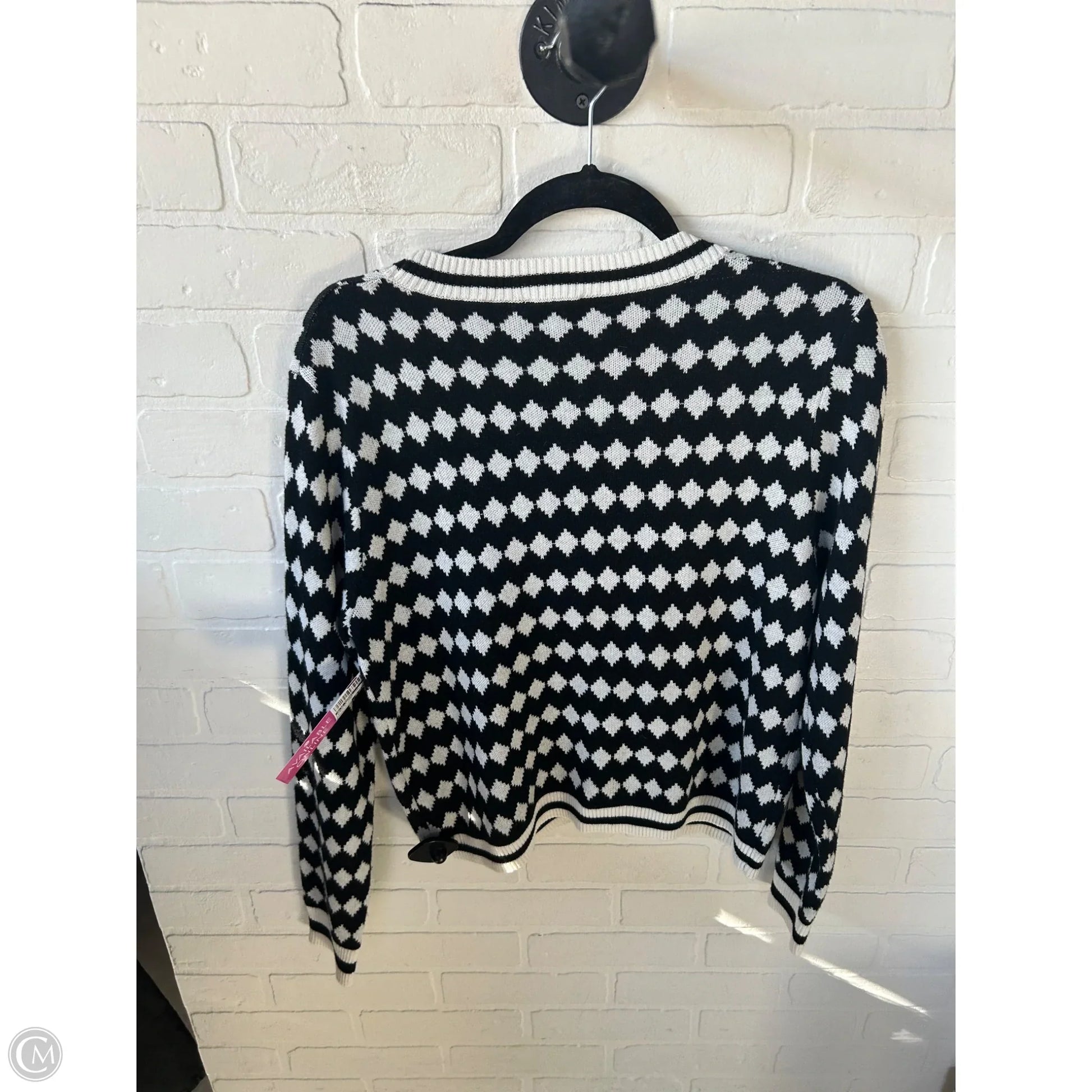 Sweater Cardigan By Elie Tahari In Black & White, Size: L