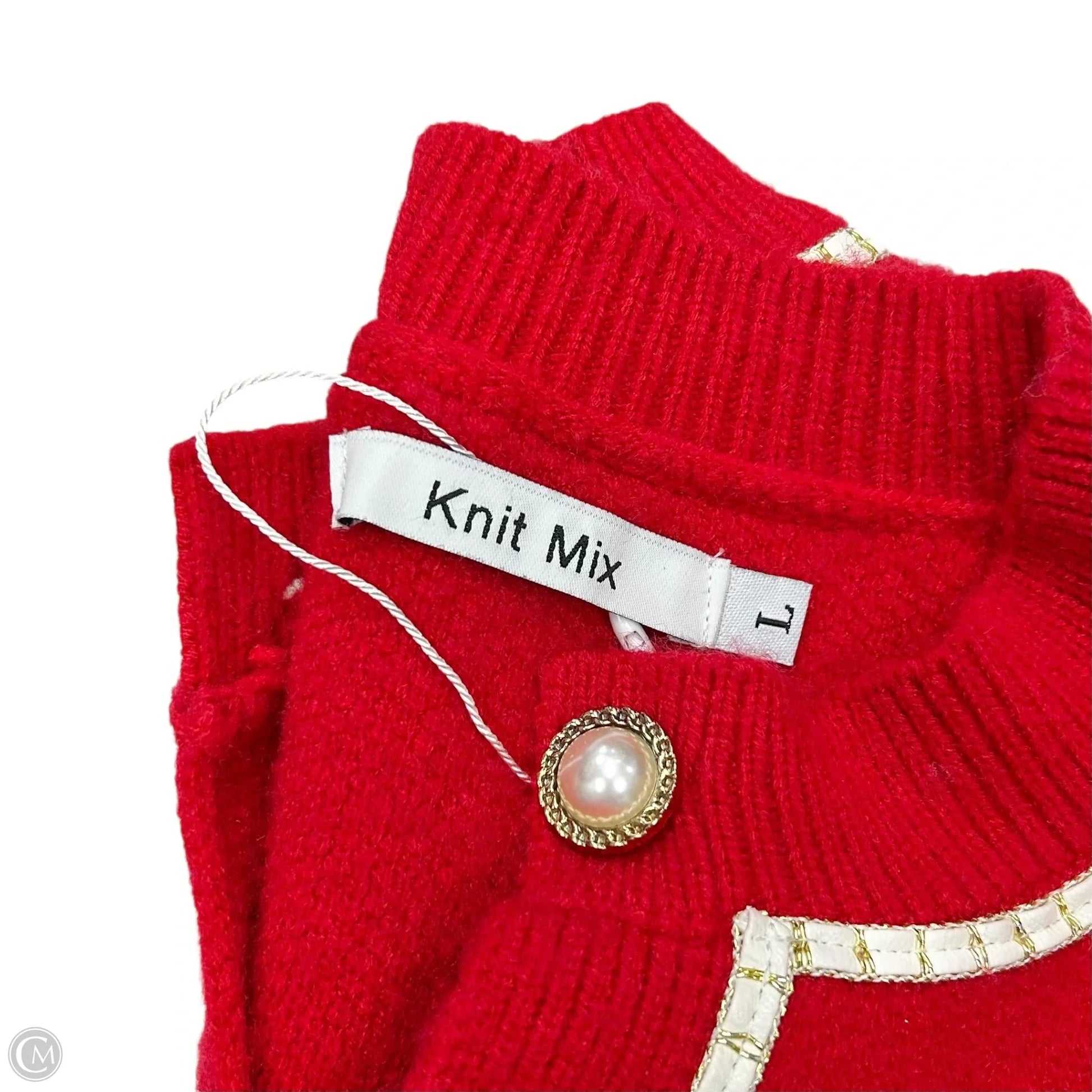 Sweater Cardigan By Knit Max In Red & White, Size: L