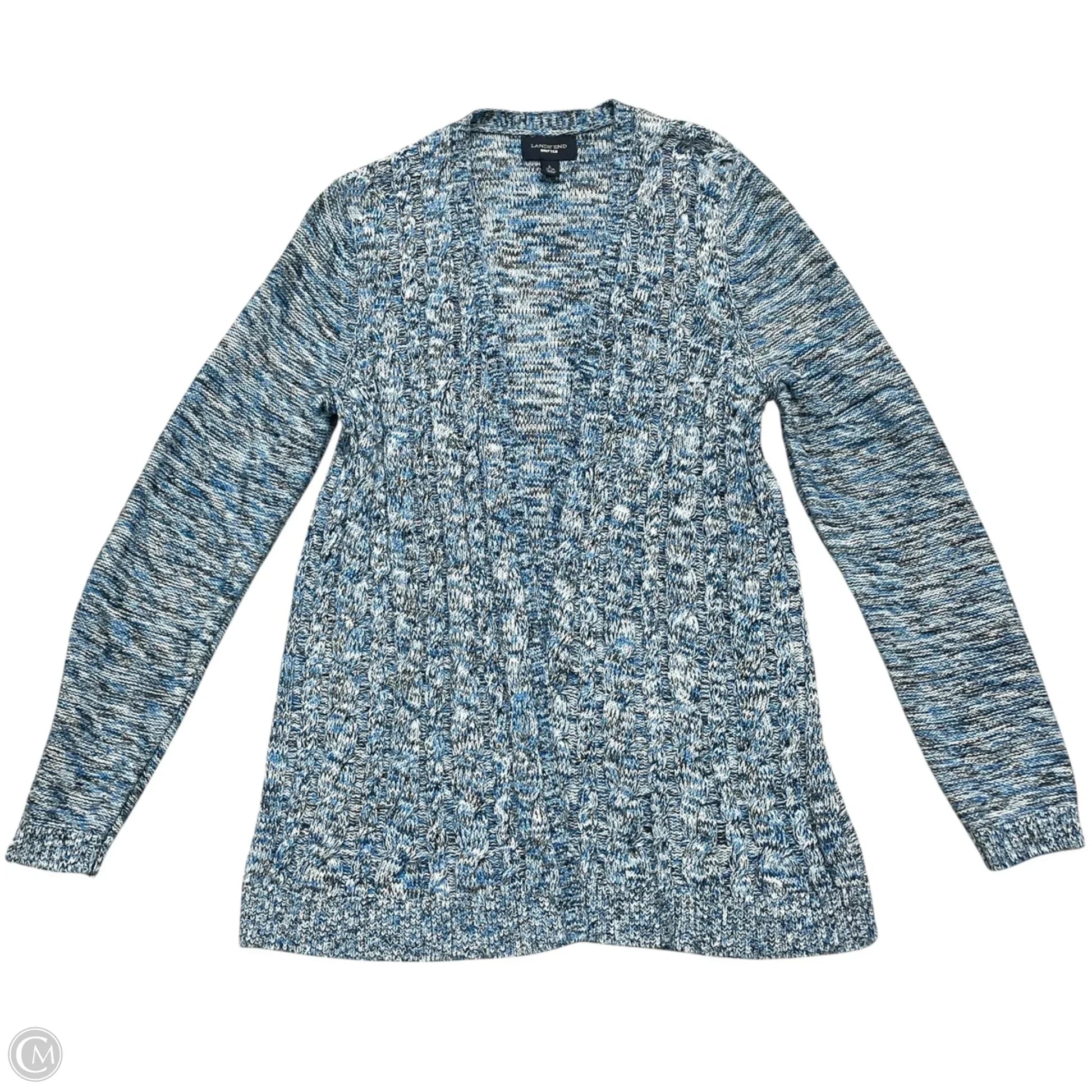 Sweater Cardigan By Lands End In Blue & White, Size: L