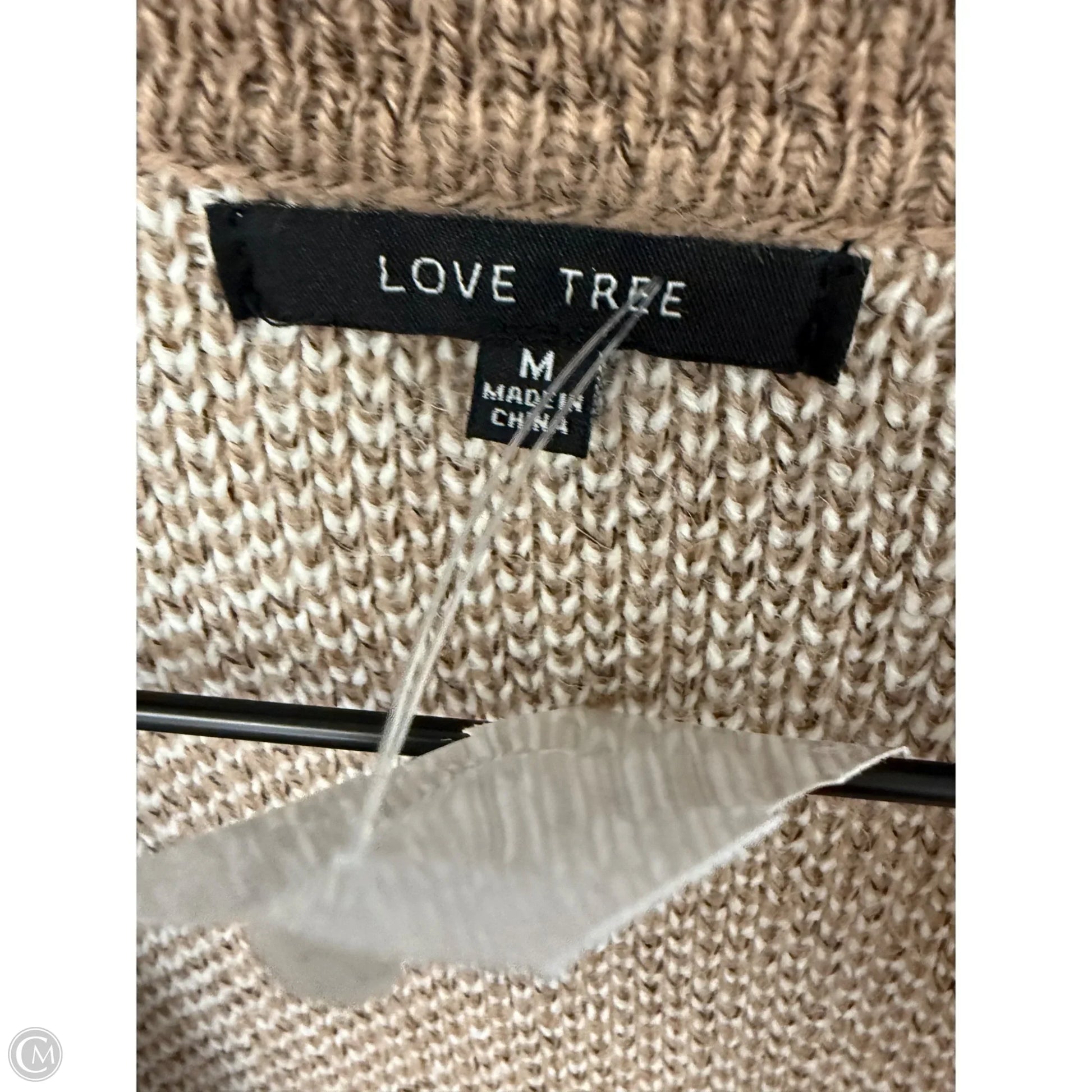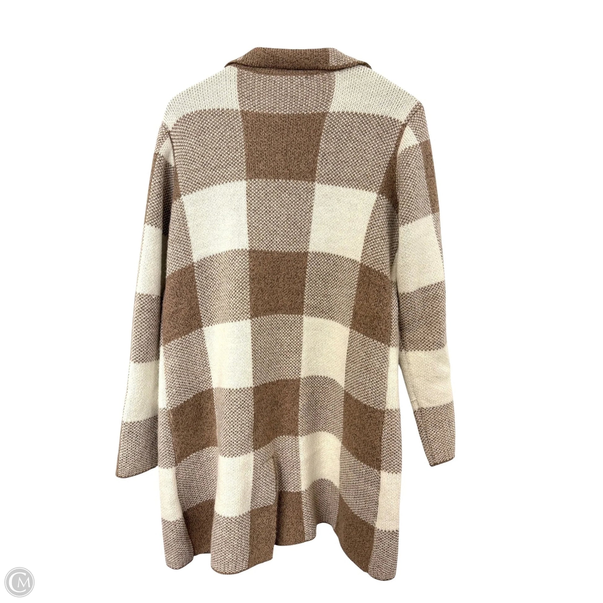 Sweater Cardigan By Love Tree In Brown & Cream, Size: M