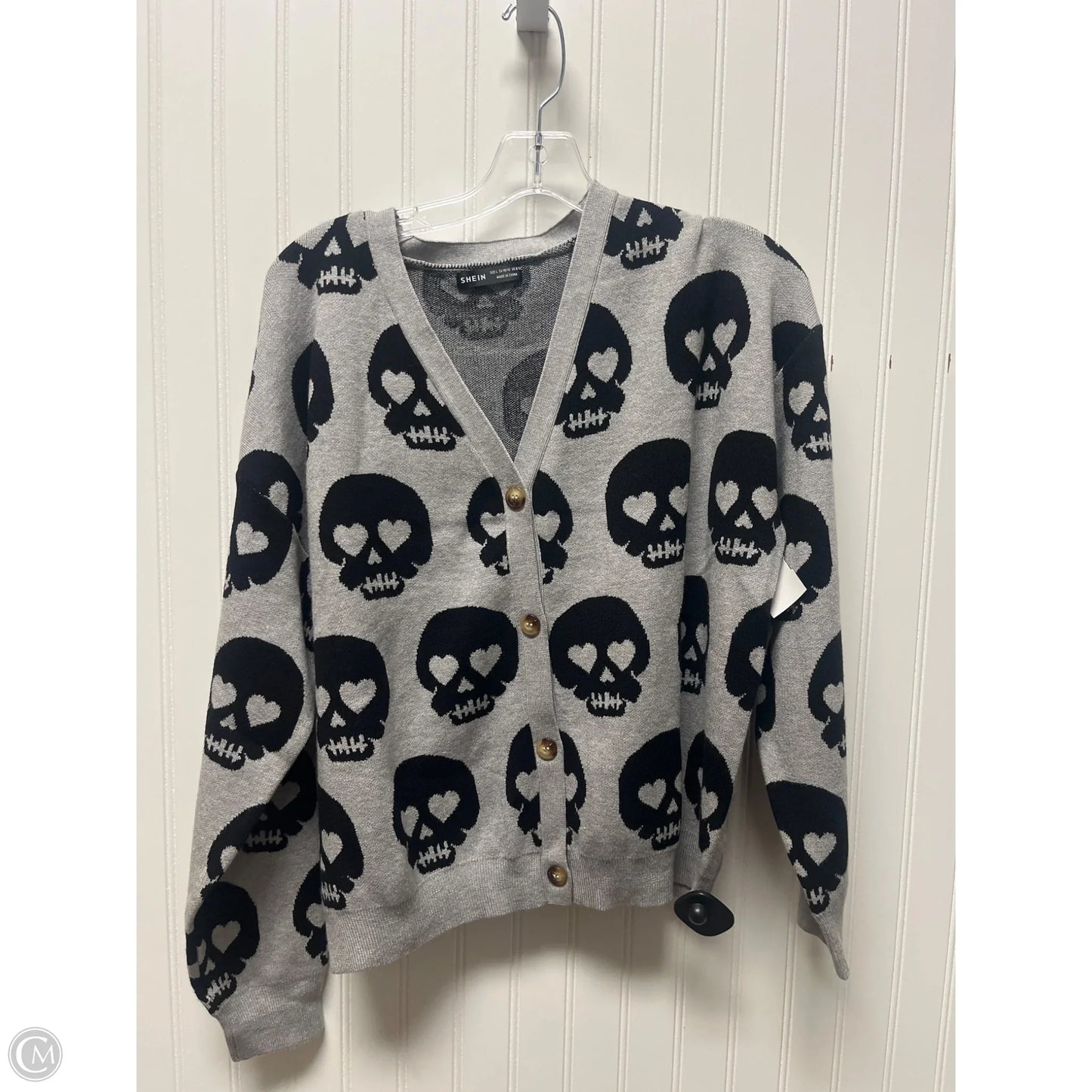 Sweater Cardigan By Shein In Black & Grey, Size: L