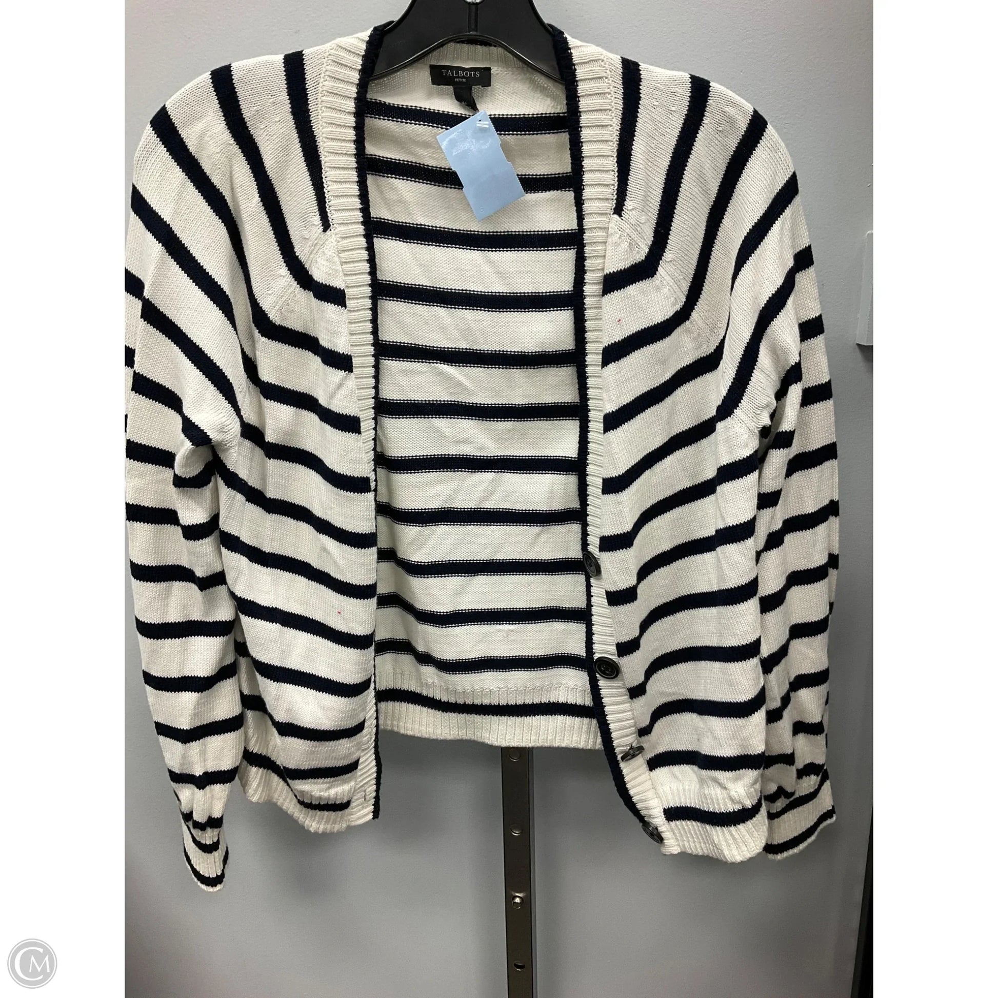 Sweater Cardigan By Talbots In Striped Pattern, Size: Mp