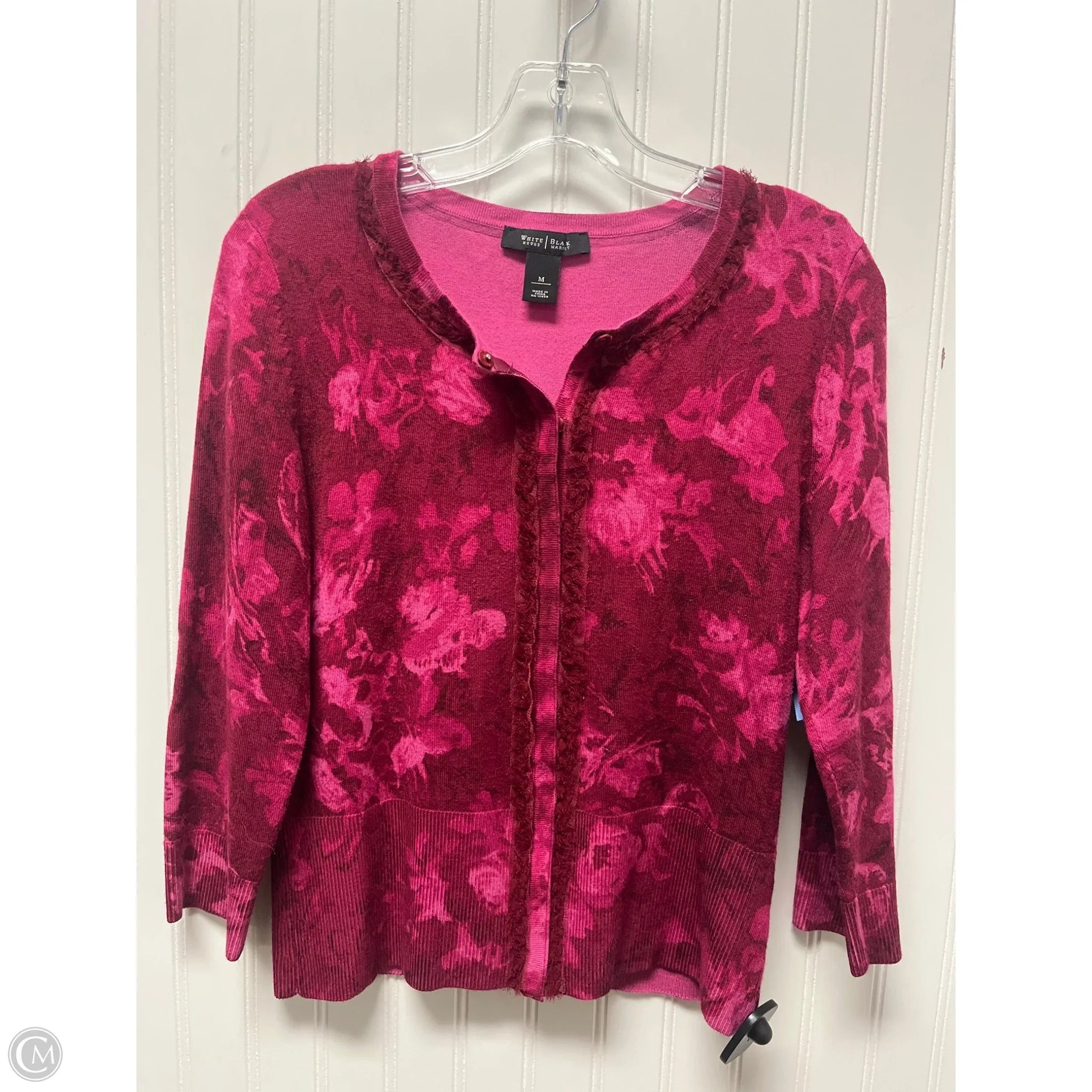 Luxurious Pink Sweater Cardigan from White House Black Market, Size M, exudes elegance and sophistication.