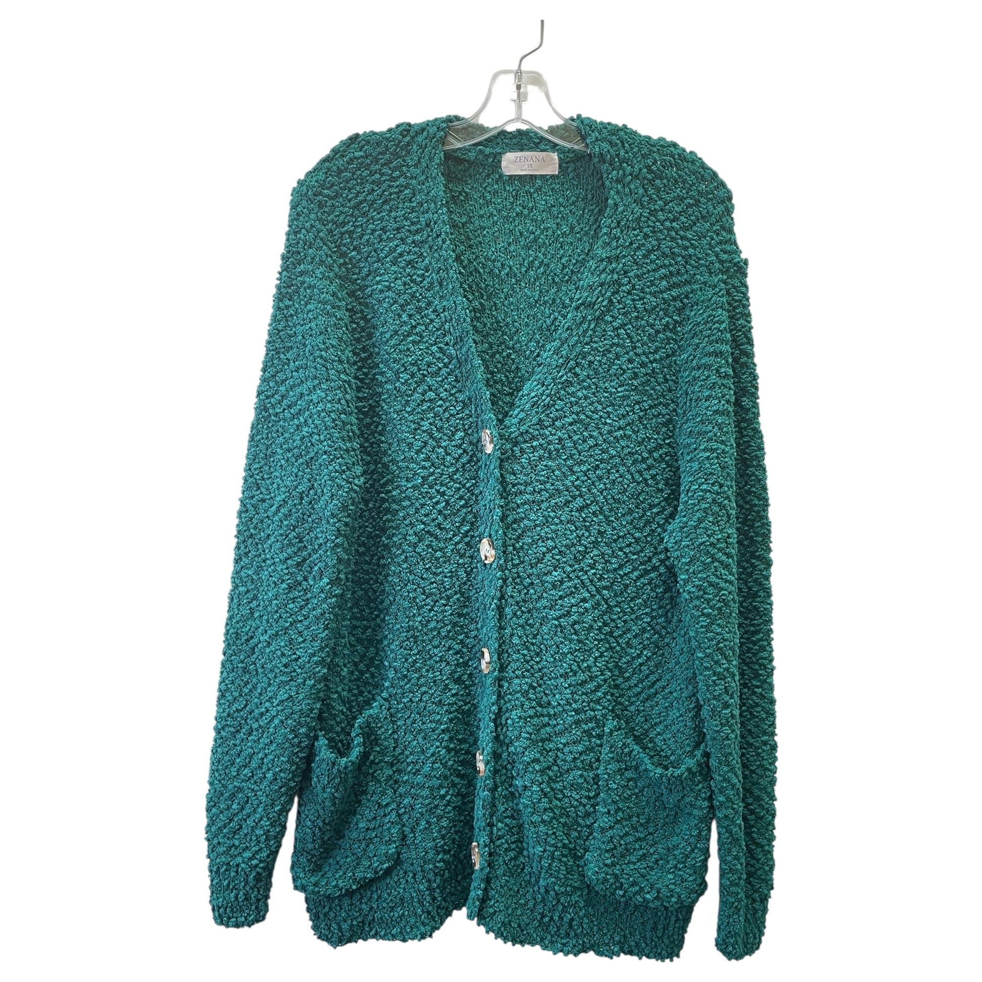 Sweater Cardigan By Zenana Outfitters In Green, Size:2X