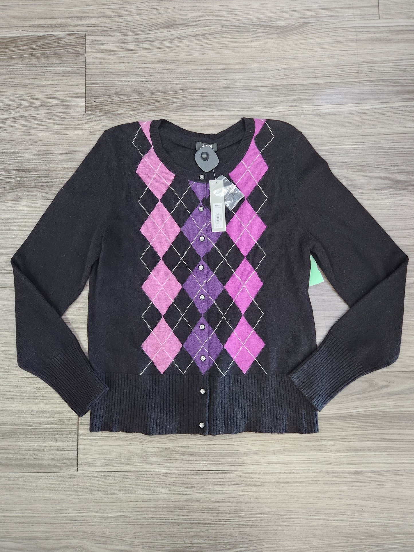 Sweater Cardigan Cashmere By Apt 9 In Black & Purple, Size: L