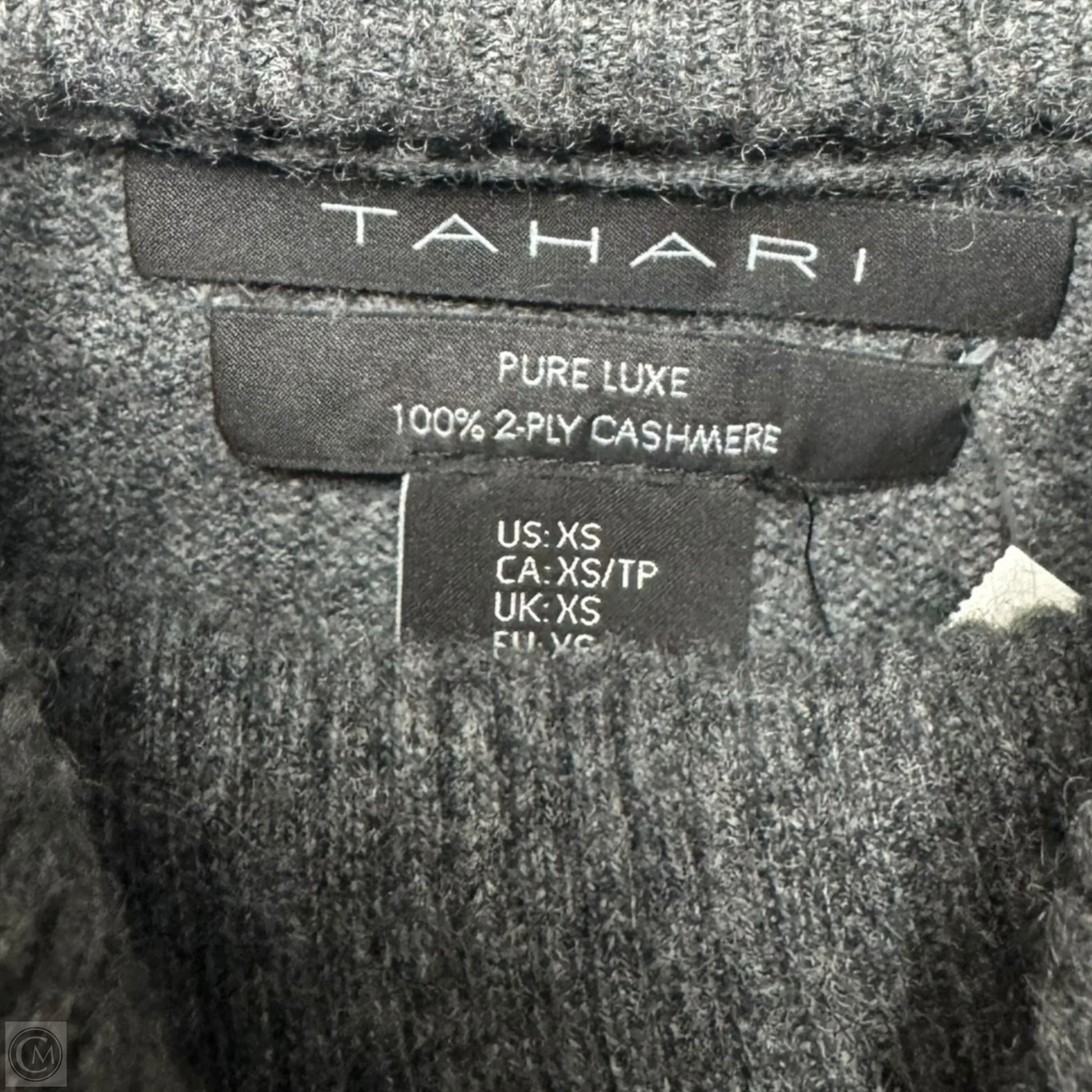 Luxurious Tahari cashmere sweater in elegant grey, tailored for XS size. Soft, cozy, and sophisticated.