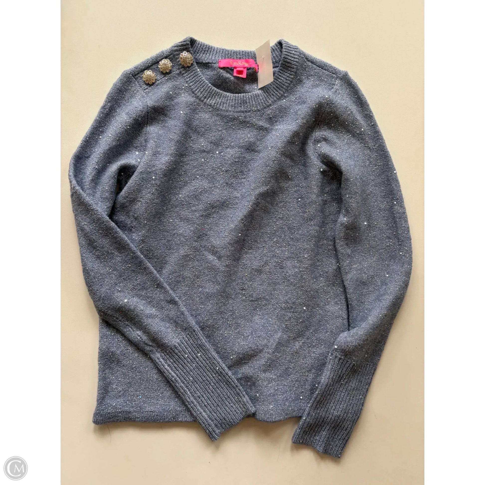 Cozy up in designer style with Lilly Pulitzer's blue sweater XS.