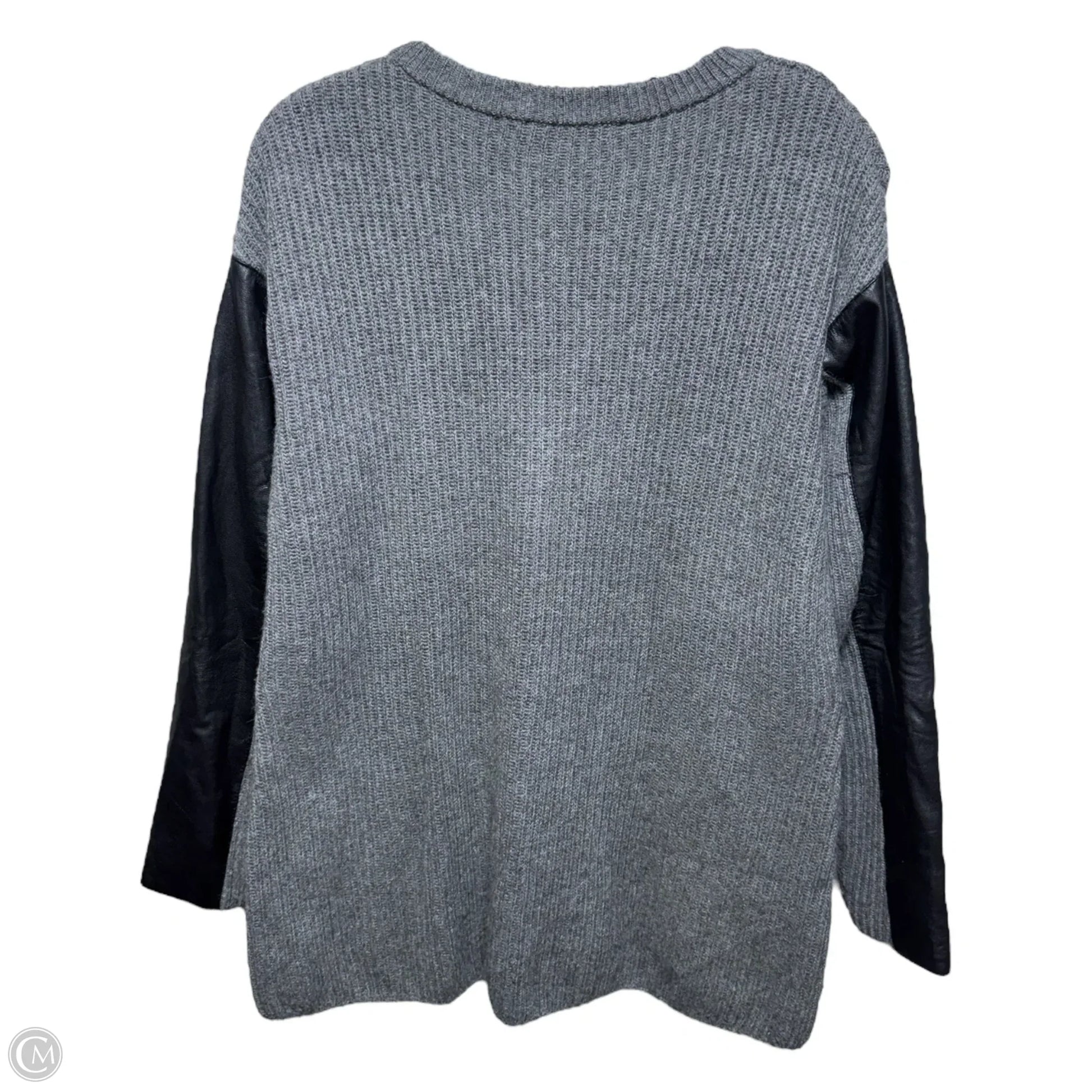 Cashmere Blend Leather Sleeve Sweater Designer By Milly In Grey, Size: S