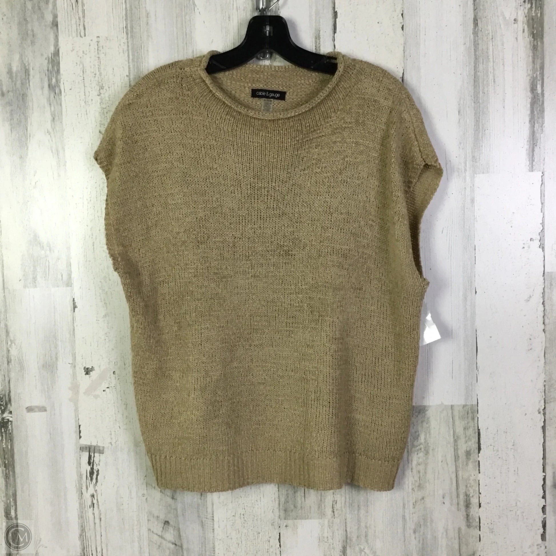 Sweater Short Sleeve By Cable And Gauge In Tan, Size: Xl