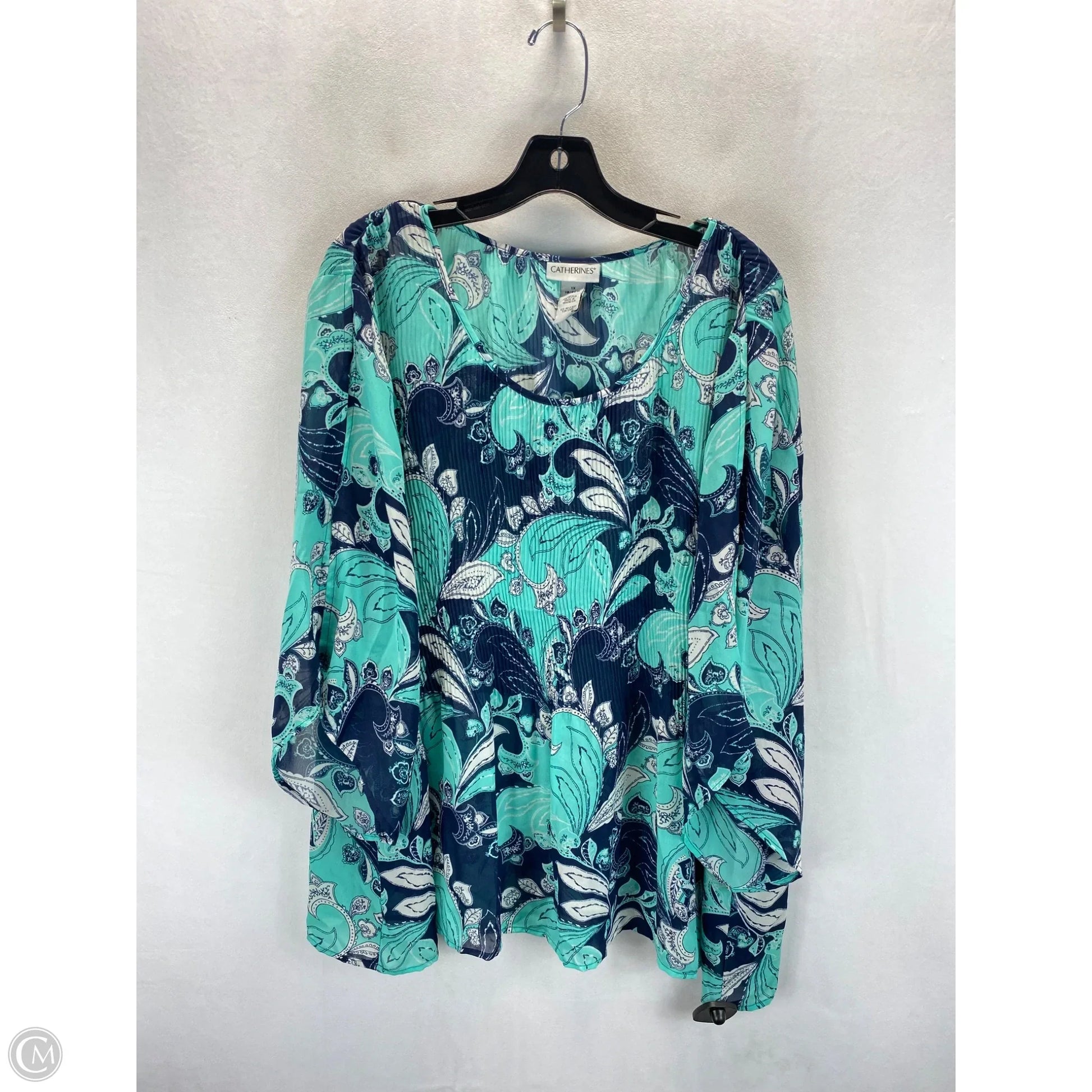 Top 3/4 Sleeve By Catherines In Blue & Green, Size: 1x