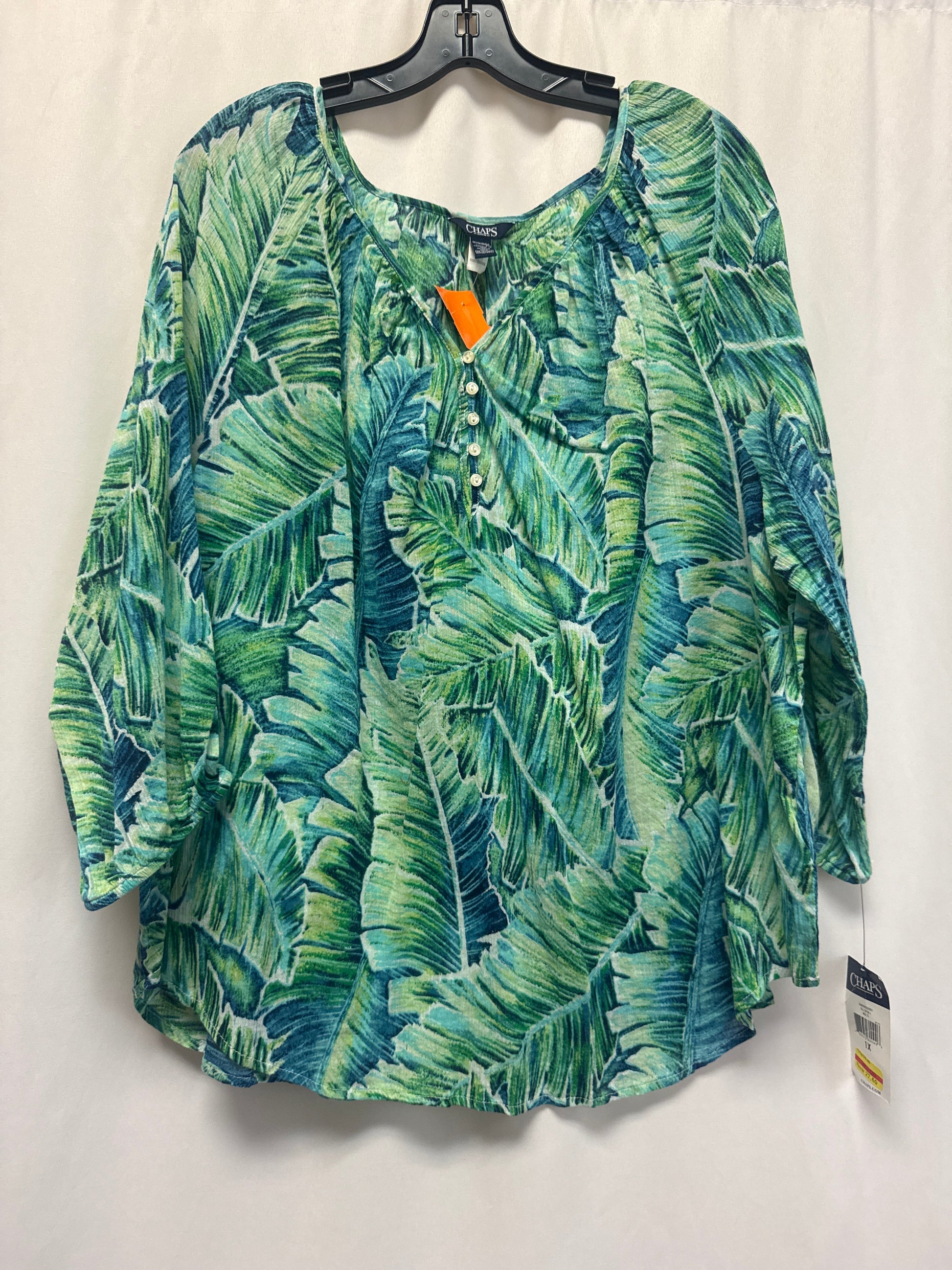 Top 3/4 Sleeve By Chaps In Blue & Green, Size: 1x