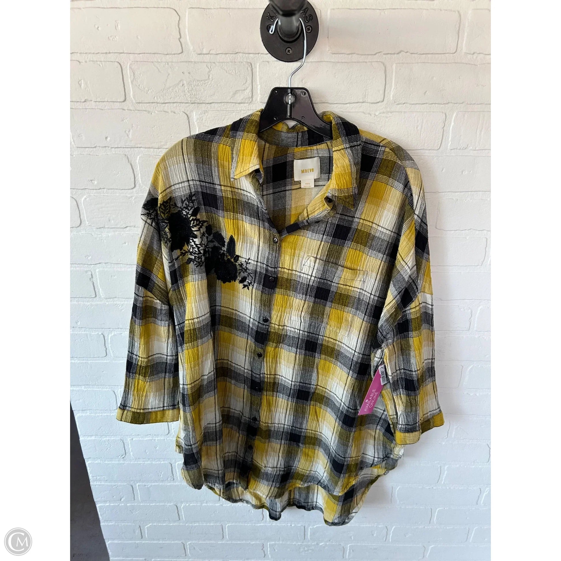 Top 3/4 Sleeve By Maeve In Black & Yellow, Size: Xs