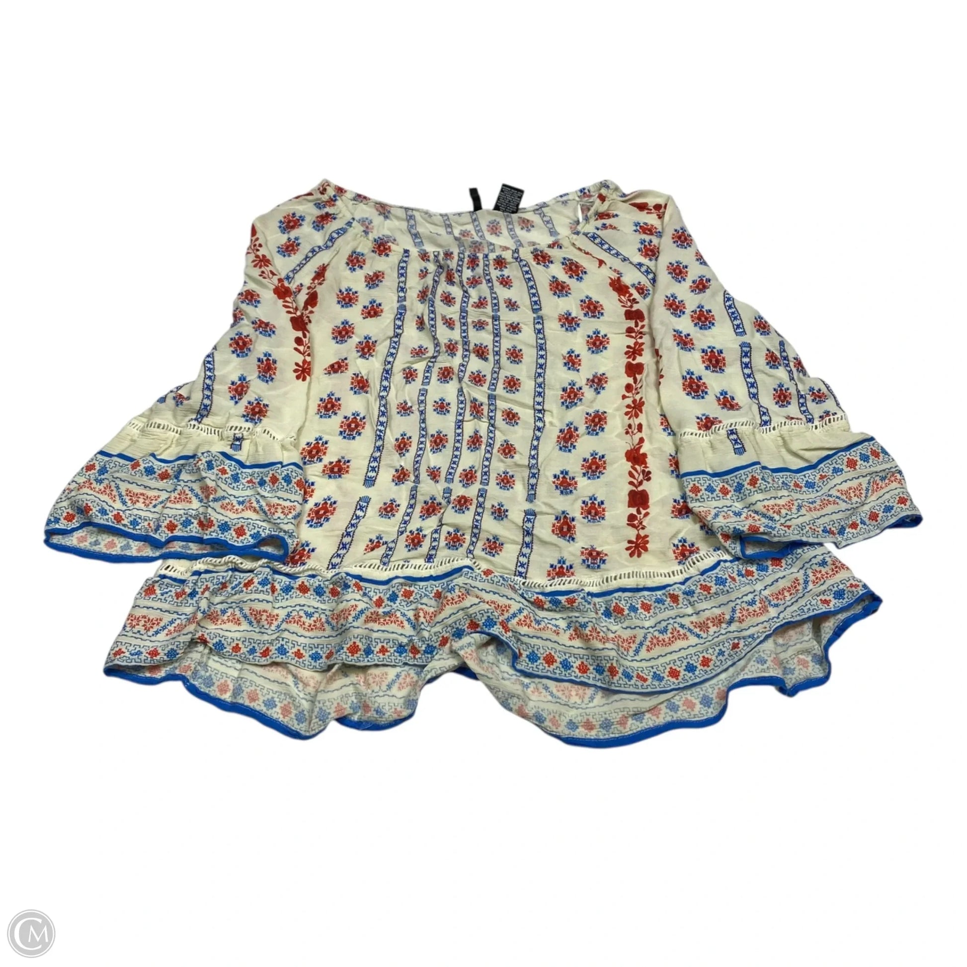 Top 3/4 Sleeve By New Directions In Blue Red & White, Size: 1x