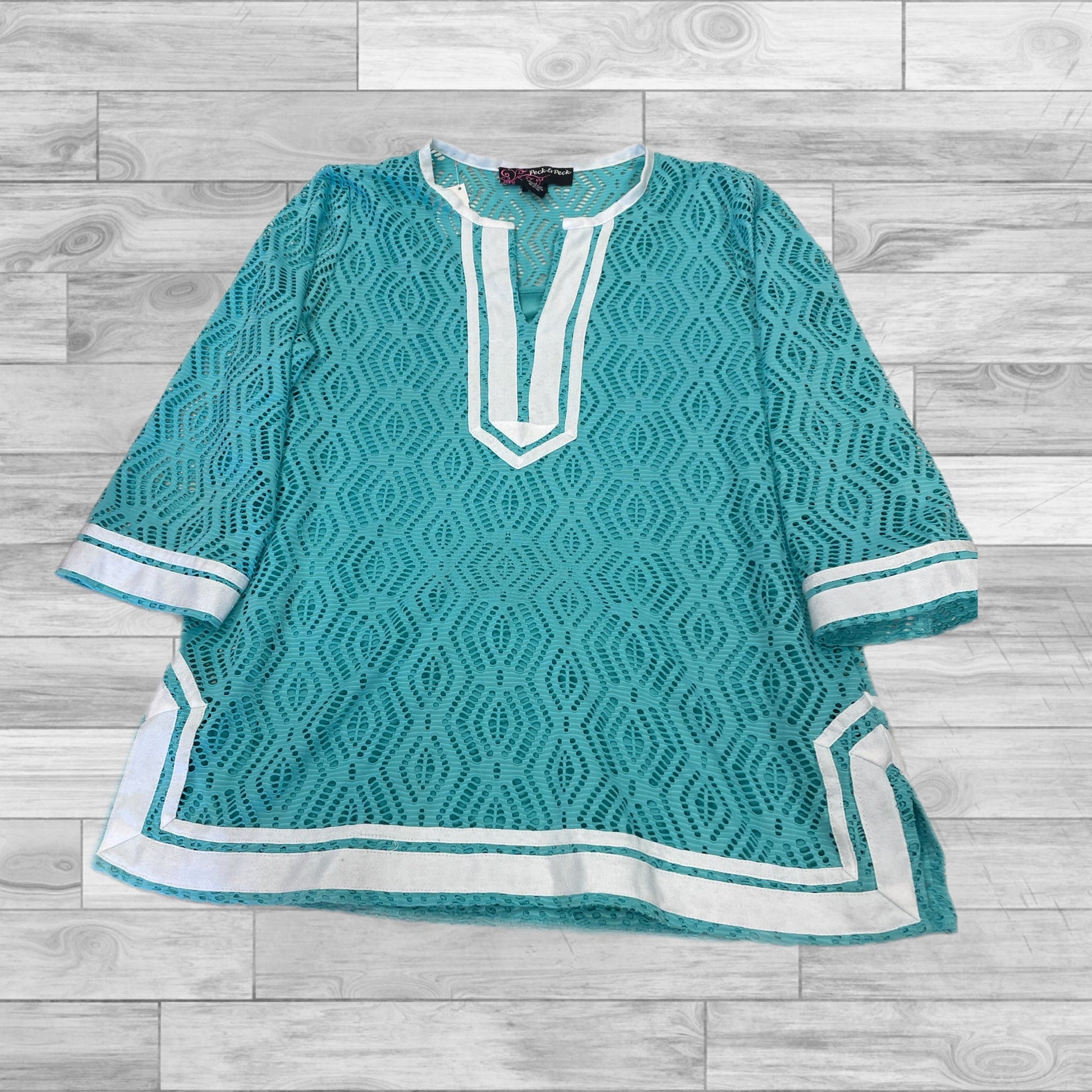 Top 3/4 Sleeve By Peck And Peck In Teal, Size: L
