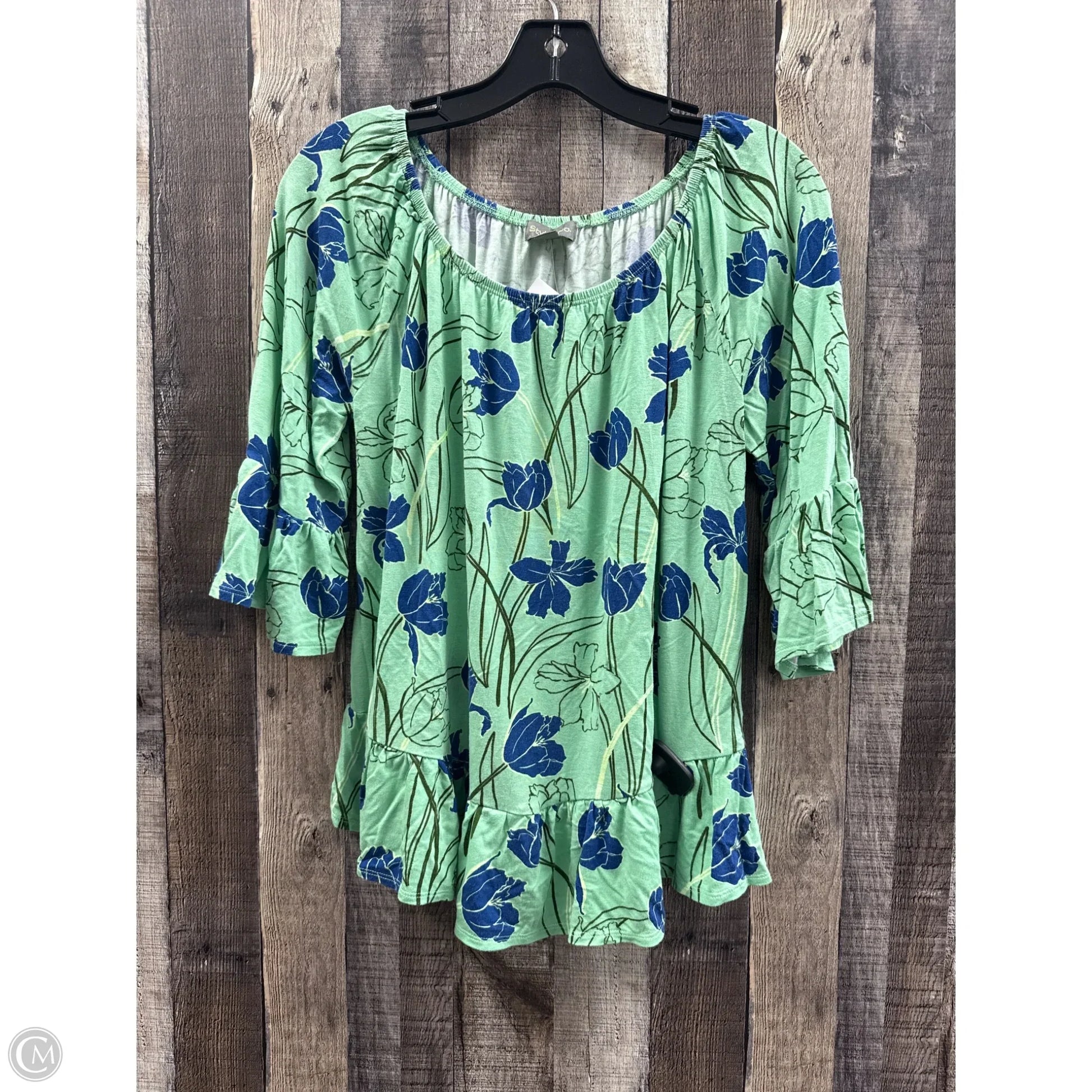 Top 3/4 Sleeve By Style And Company In Blue & Green, Size: S
