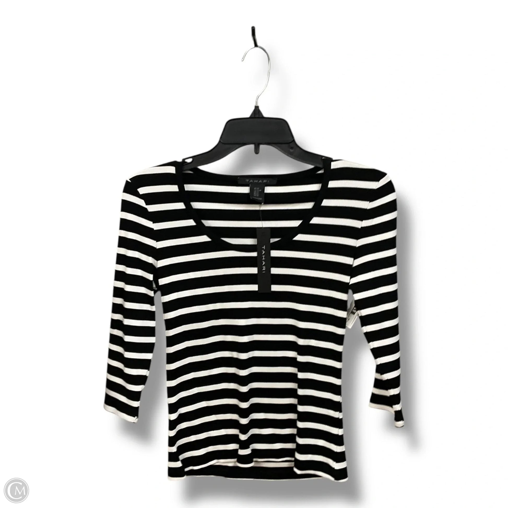 Top 3/4 Sleeve By Tahari By Arthur Levine In Black & White, Size: Xs