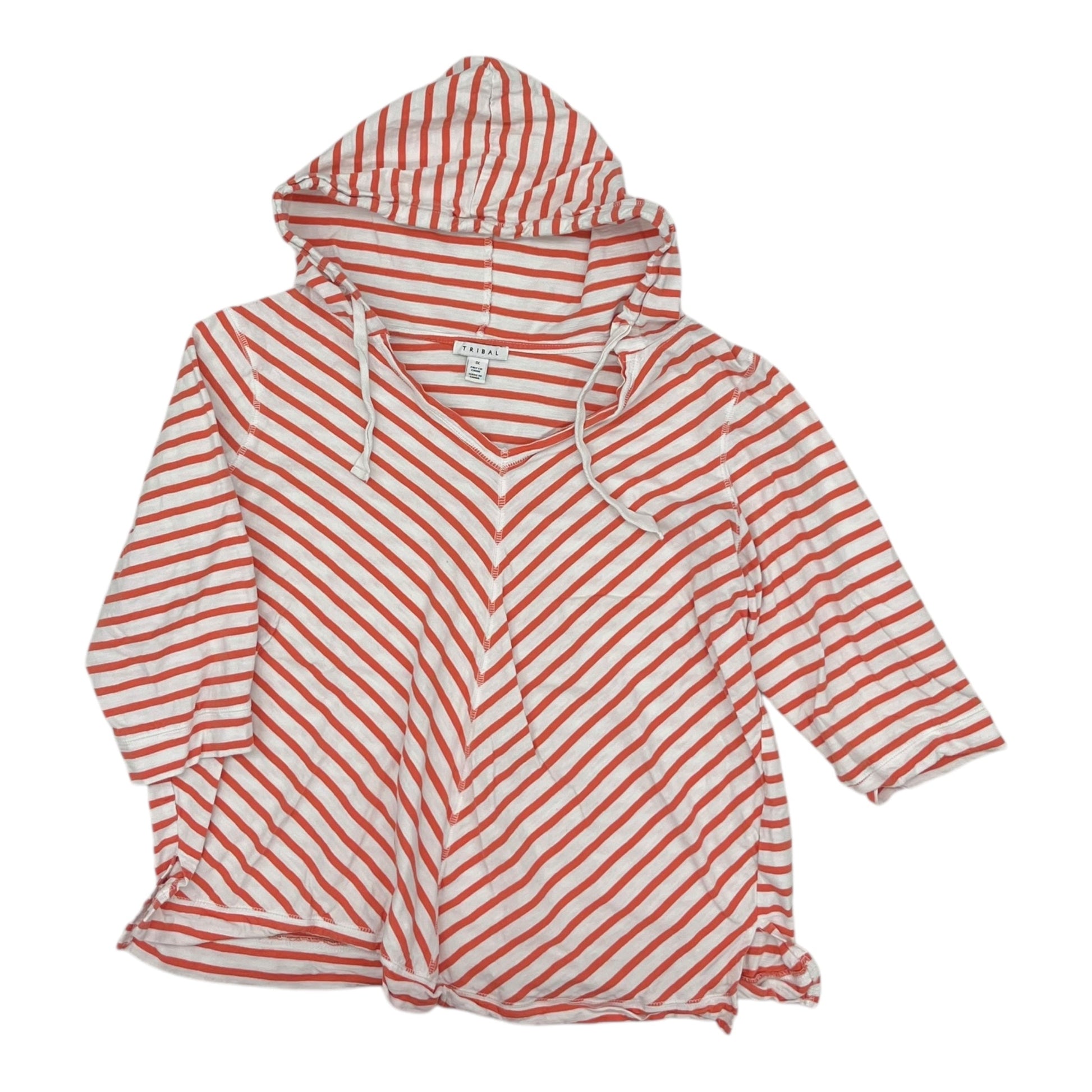Top 3/4 Sleeve By Tribal In Pink & White, Size:1X