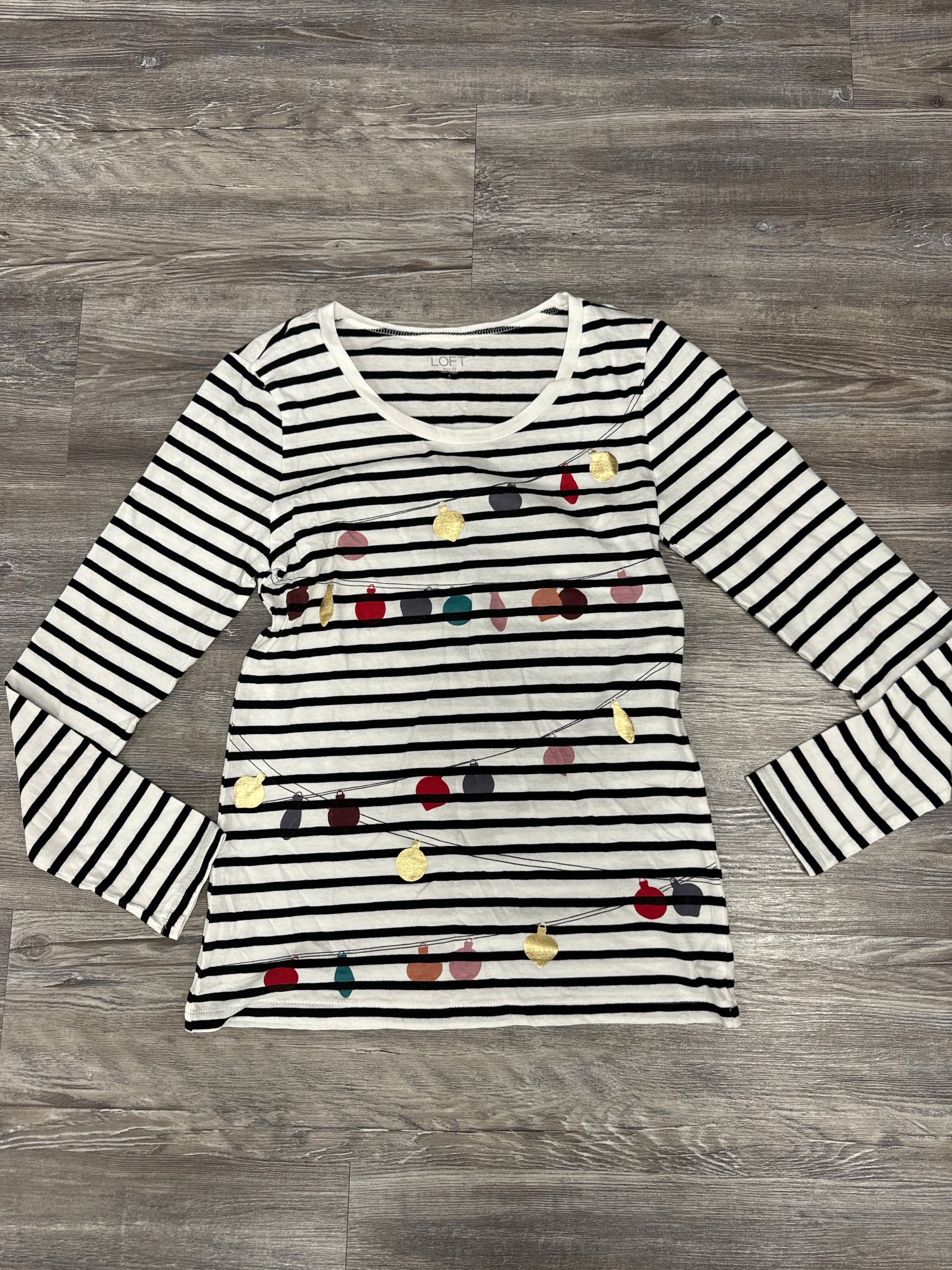 Top Long Sleeve Basic By Loft In Black & White, Size: S