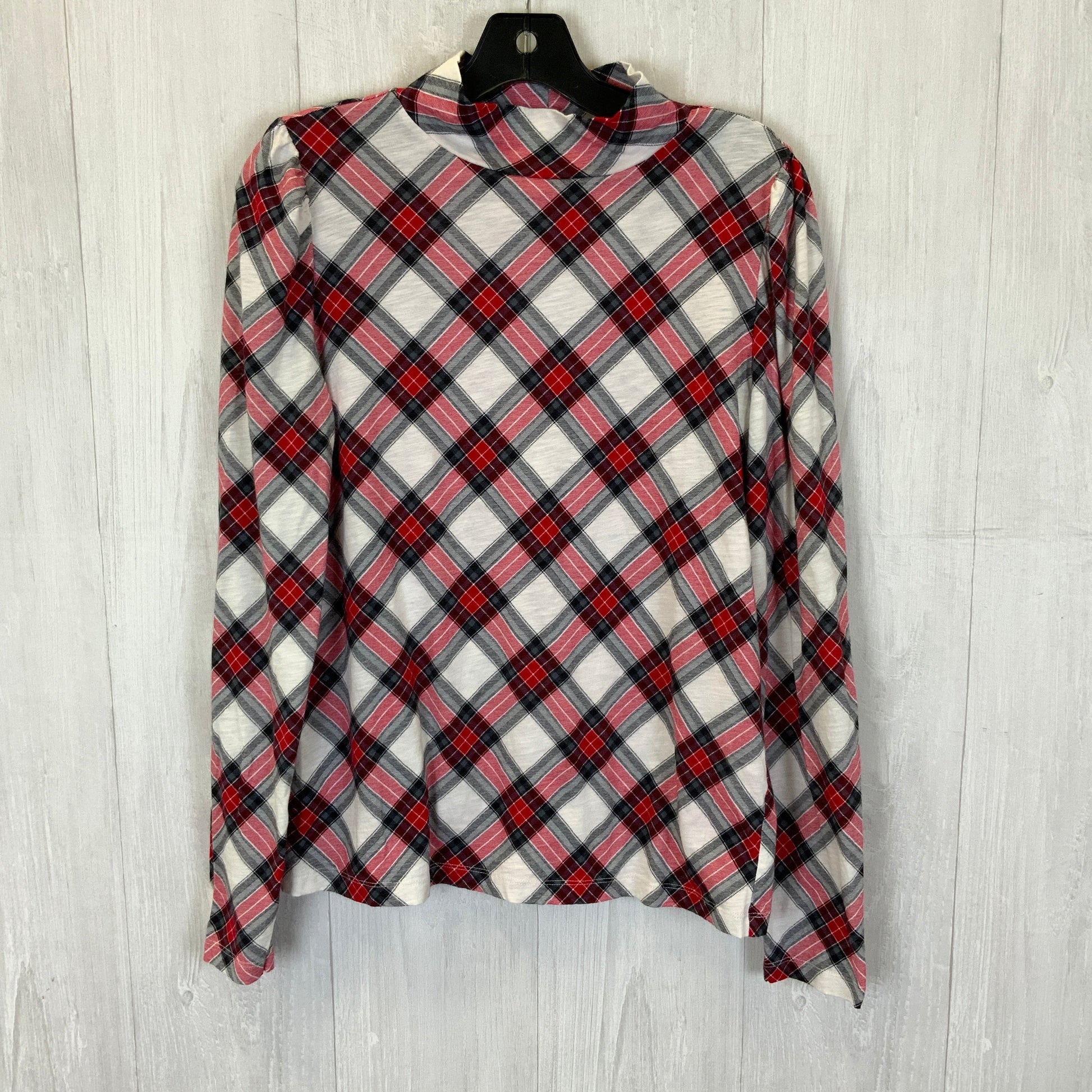 Top Long Sleeve Basic By Loft In Plaid Pattern, Size: L