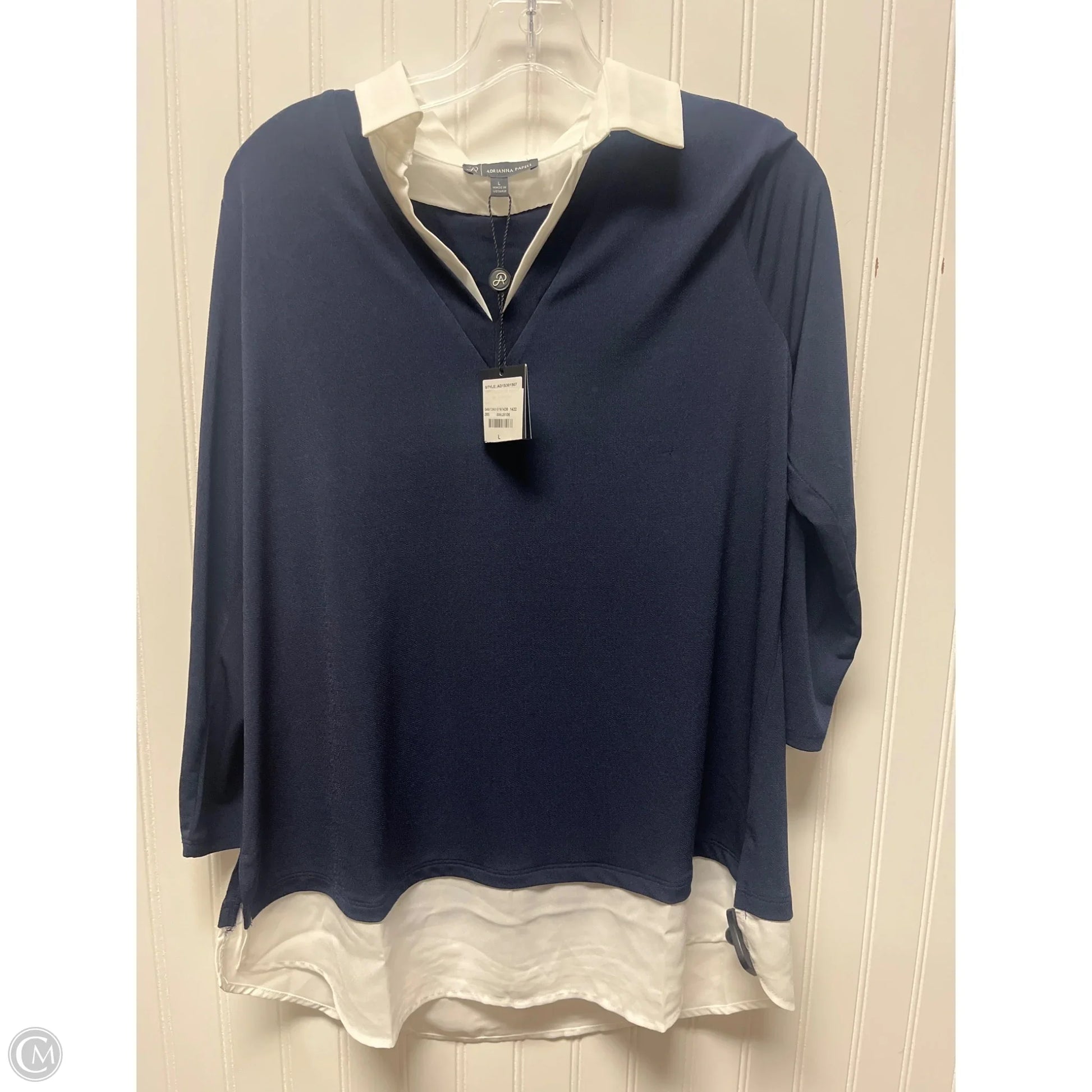 Top Long Sleeve By Adrianna Papell In Blue & White, Size: L