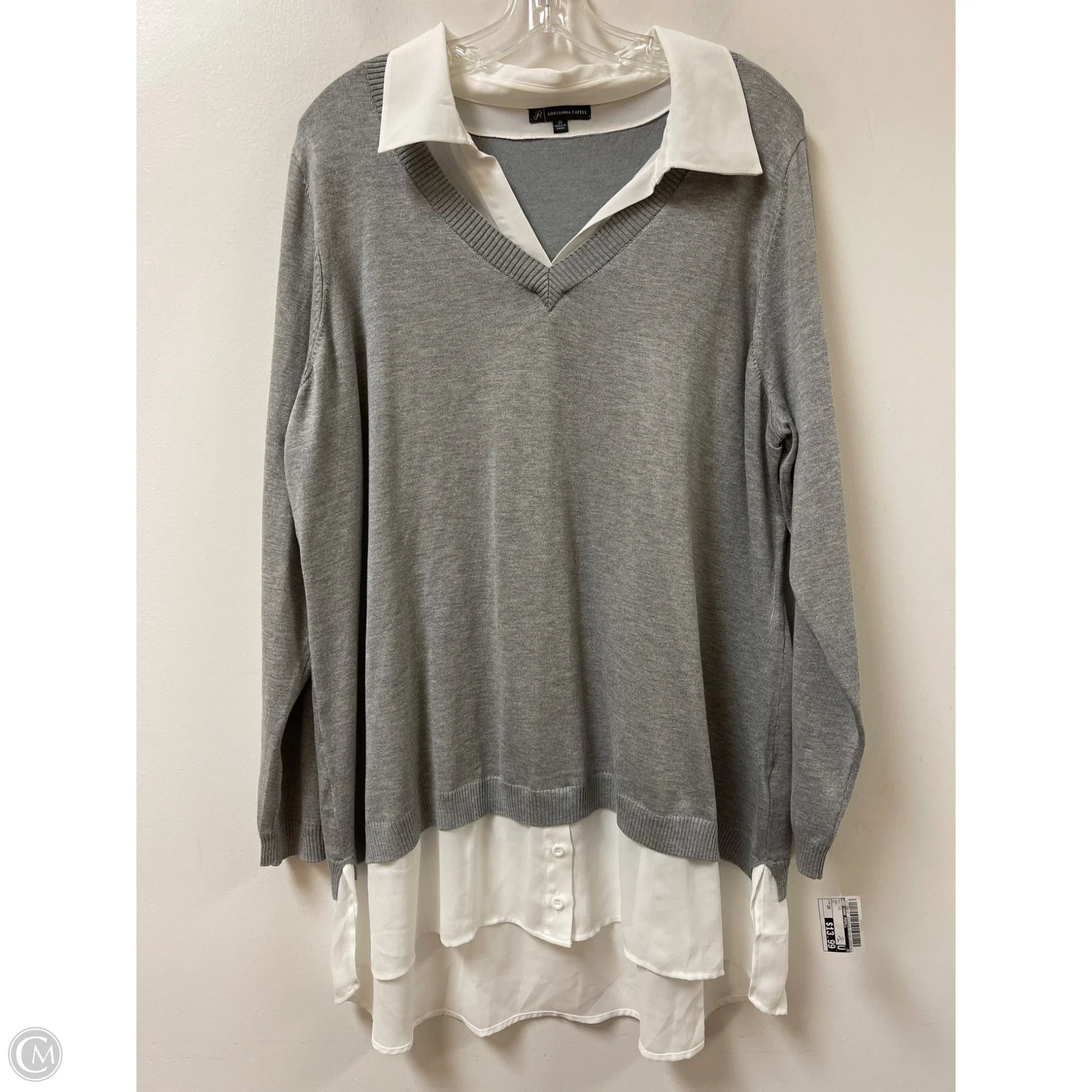 Top Long Sleeve By Adrianna Papell In Grey, Size: 2x