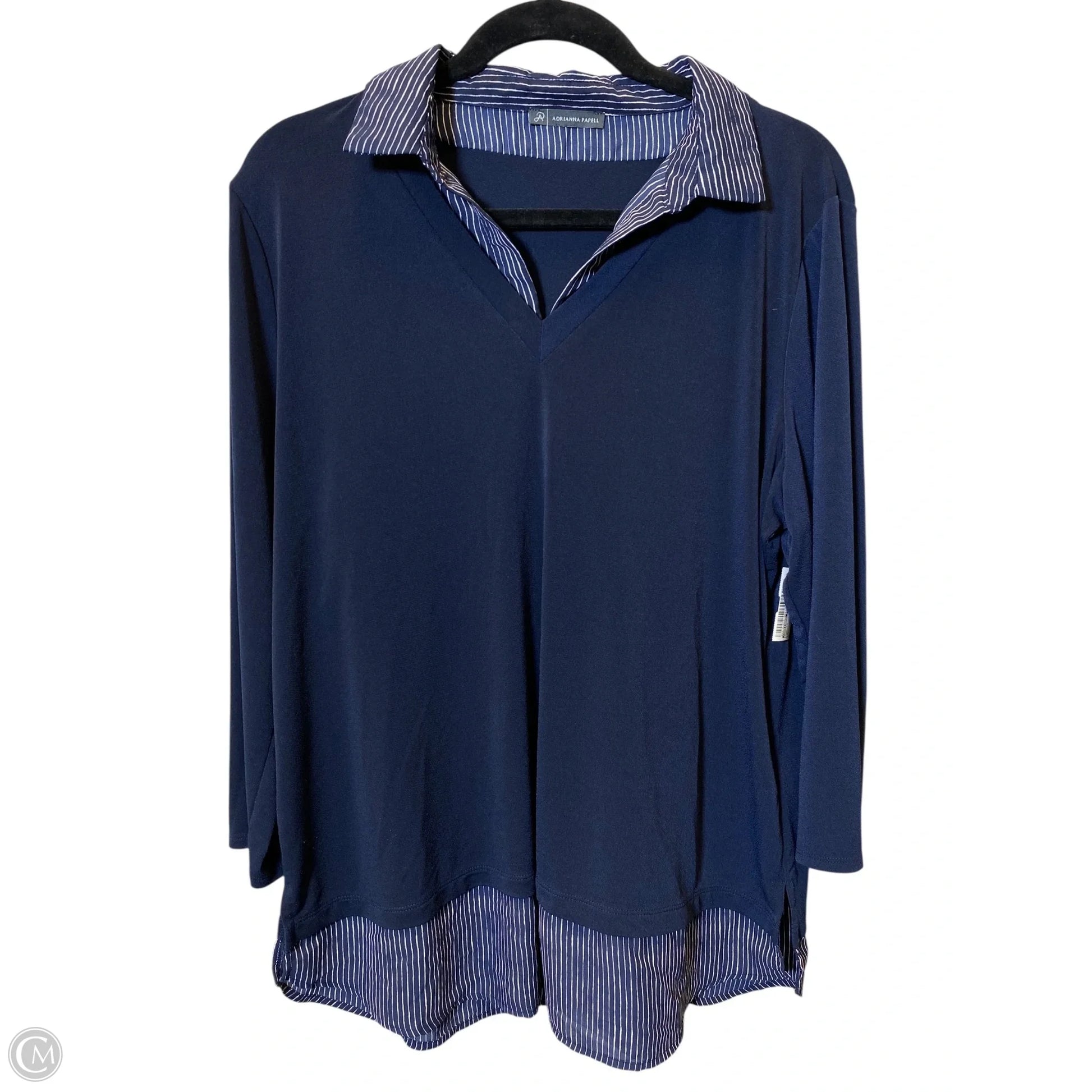 Top Long Sleeve By Adrianna Papell In Navy, Size: Xl