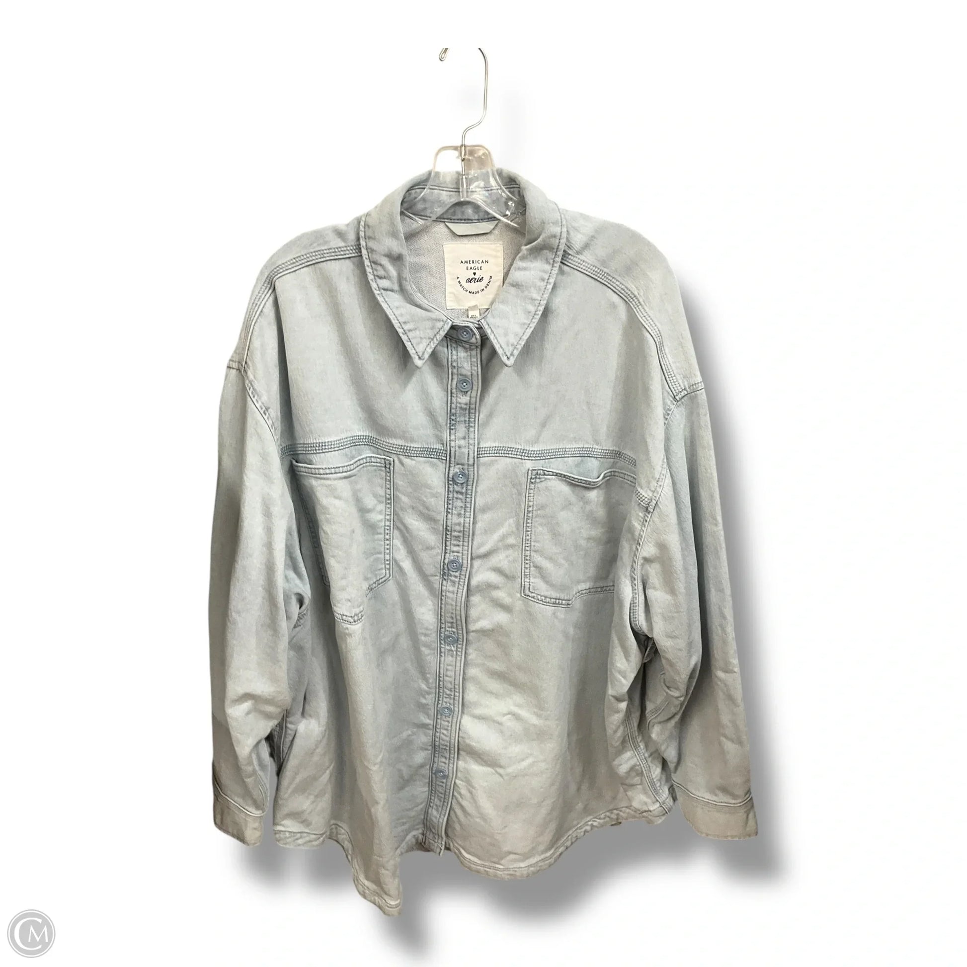 Top Long Sleeve By American Eagle In Blue Denim, Size: Xxl