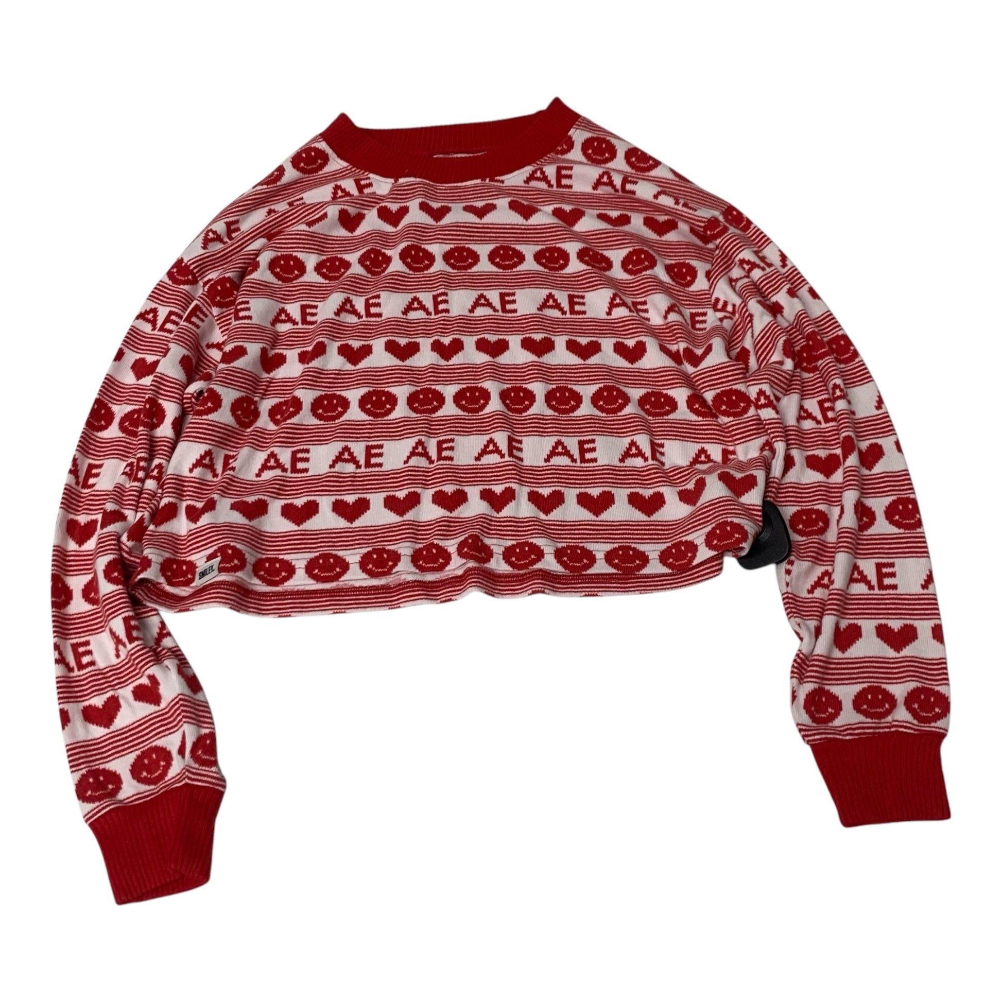 Top Long Sleeve By American Eagle In Red & White, Size: Xs