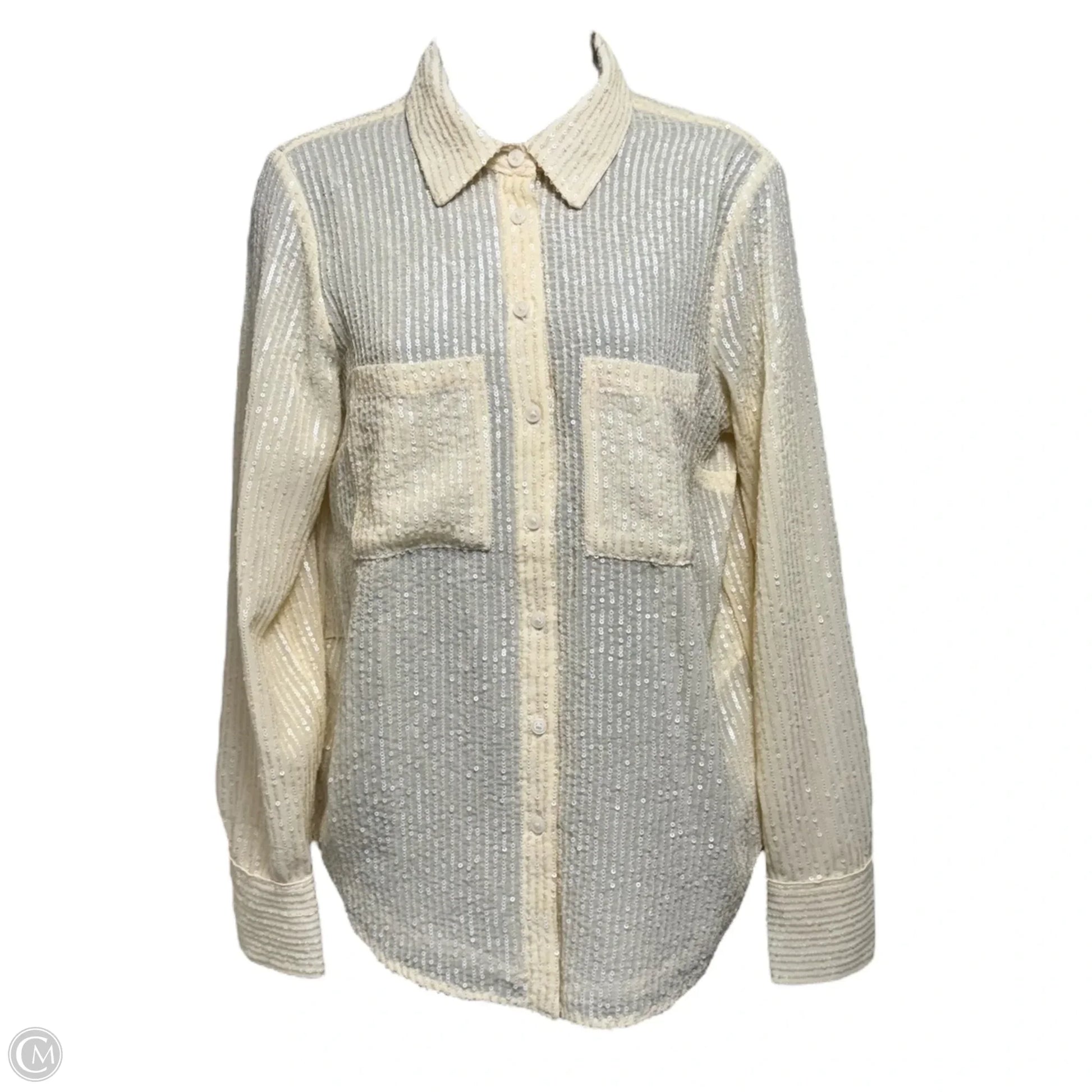 The Remie Sequin Button Down By Anthropologie In Pearl, Size: S