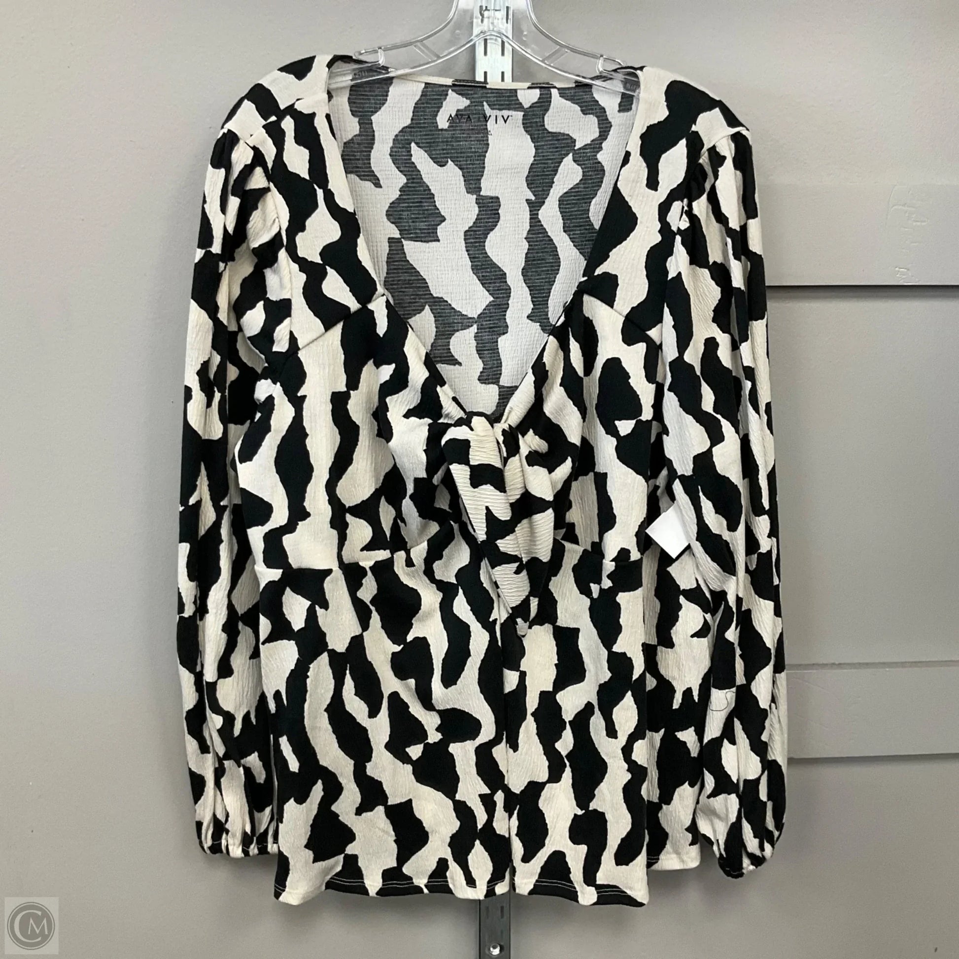 Top Long Sleeve By Ava & Viv In Black & Cream, Size: 2x