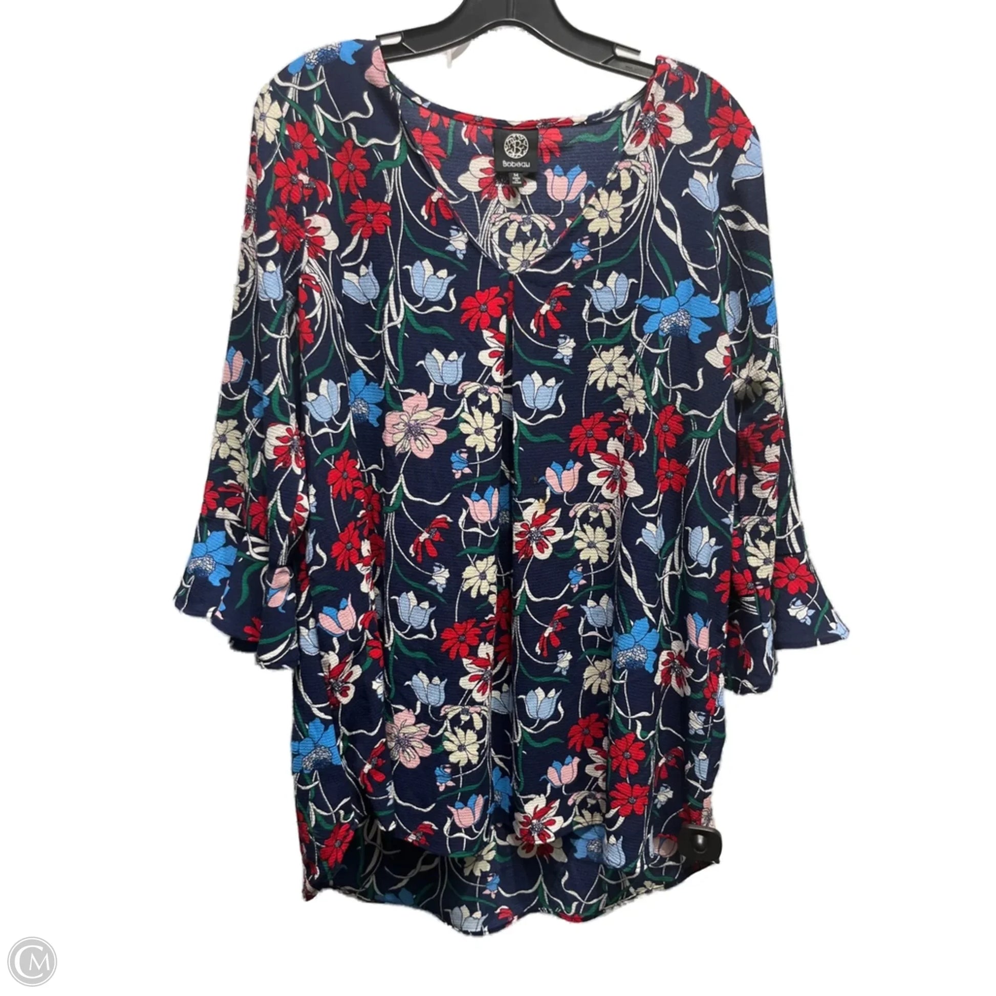 Top Long Sleeve By Bobeau In Blue & Red, Size: M