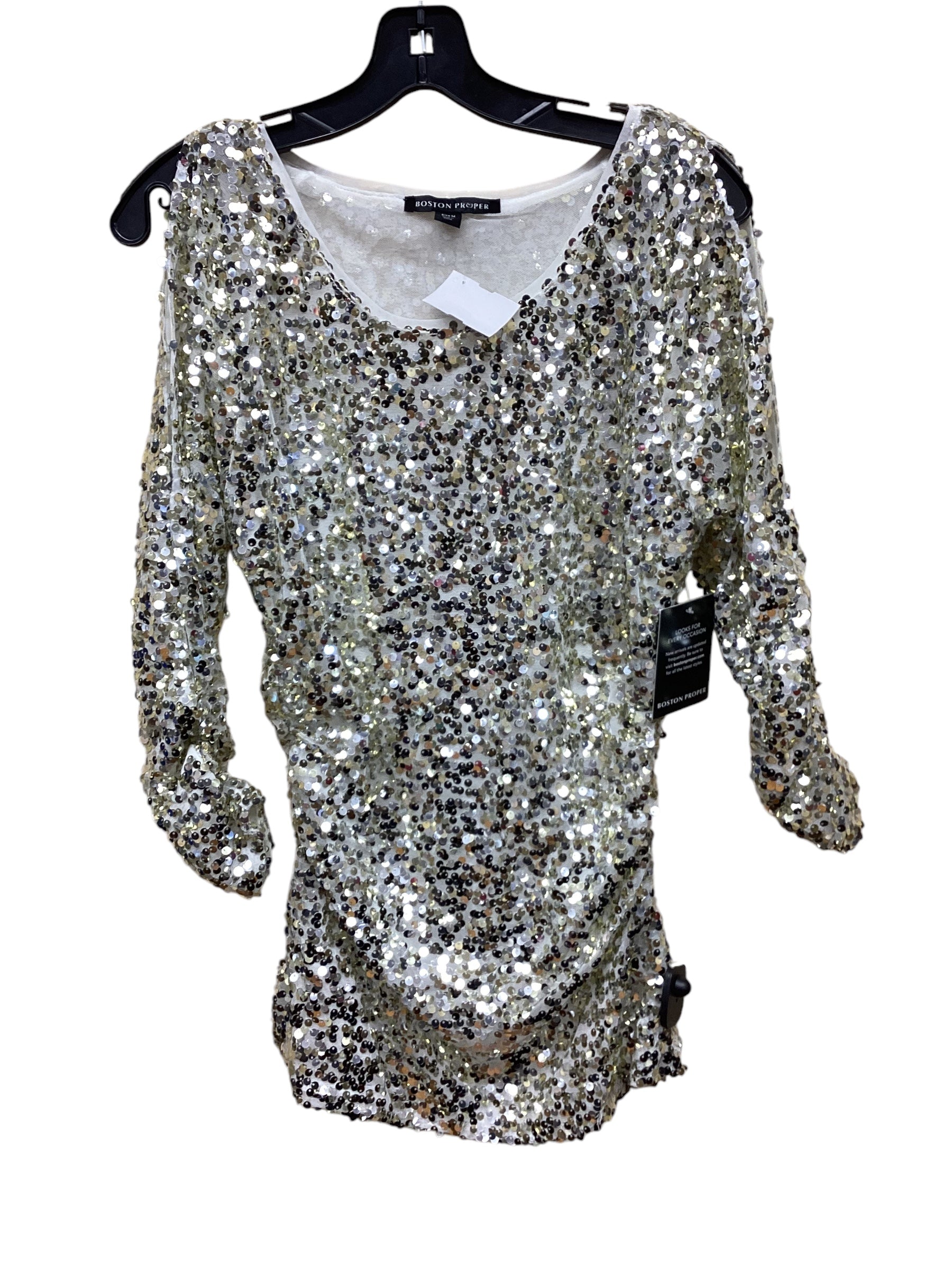 Top Long Sleeve By Boston Proper In Silver, Size: M