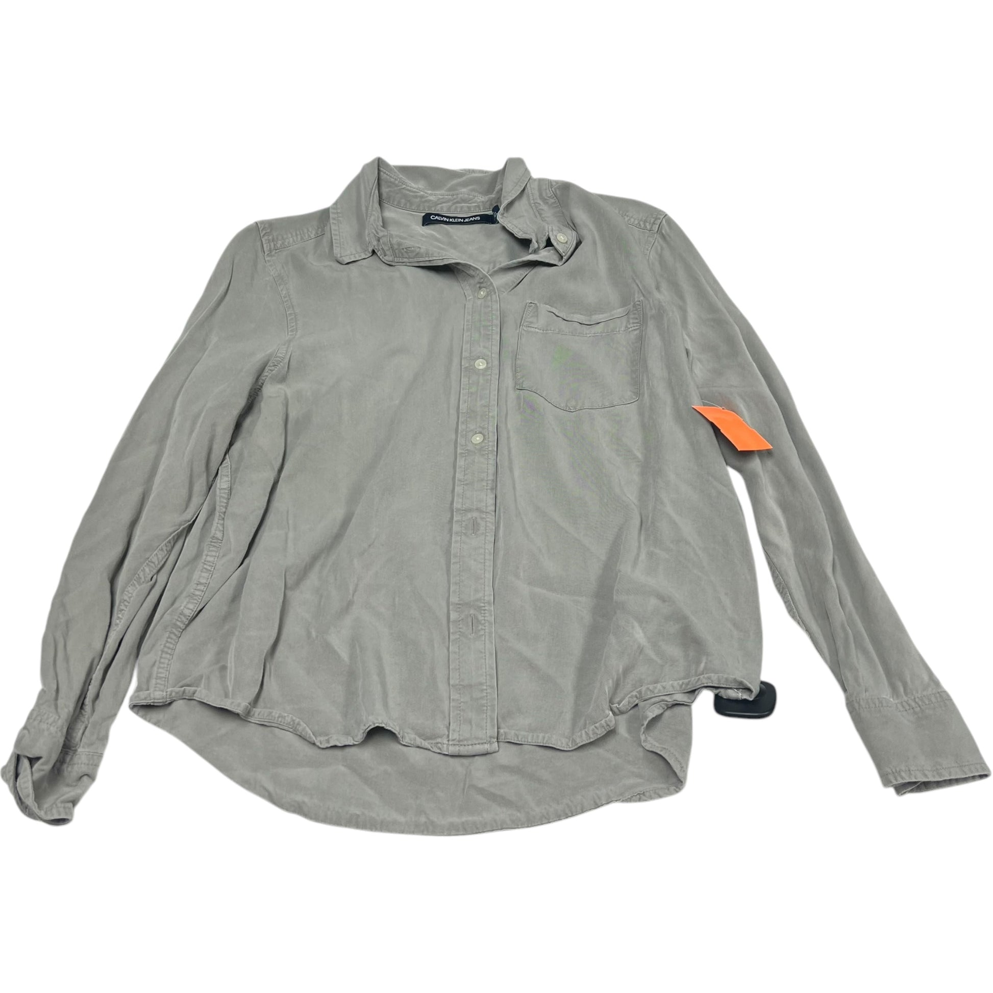 Top Long Sleeve By Calvin Klein In Grey, Size: M