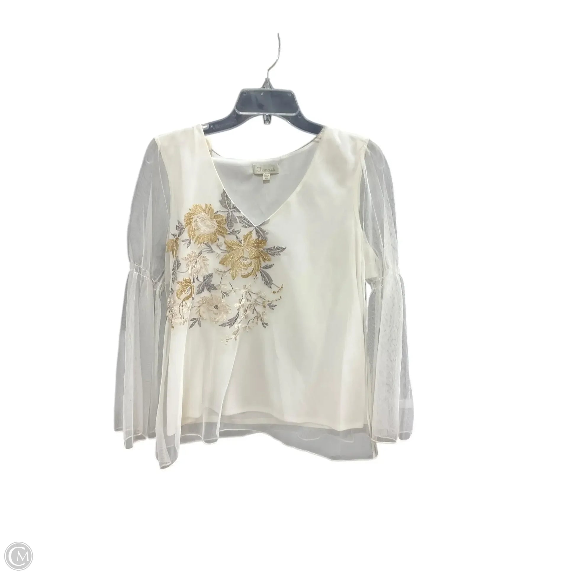 Top Long Sleeve By Chenault In Cream & Grey, Size: M