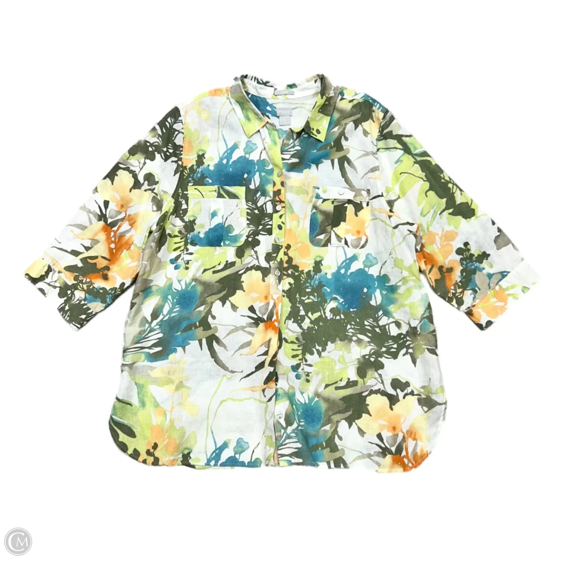 Top Long Sleeve By Chicos In Green & White, Size: 2x