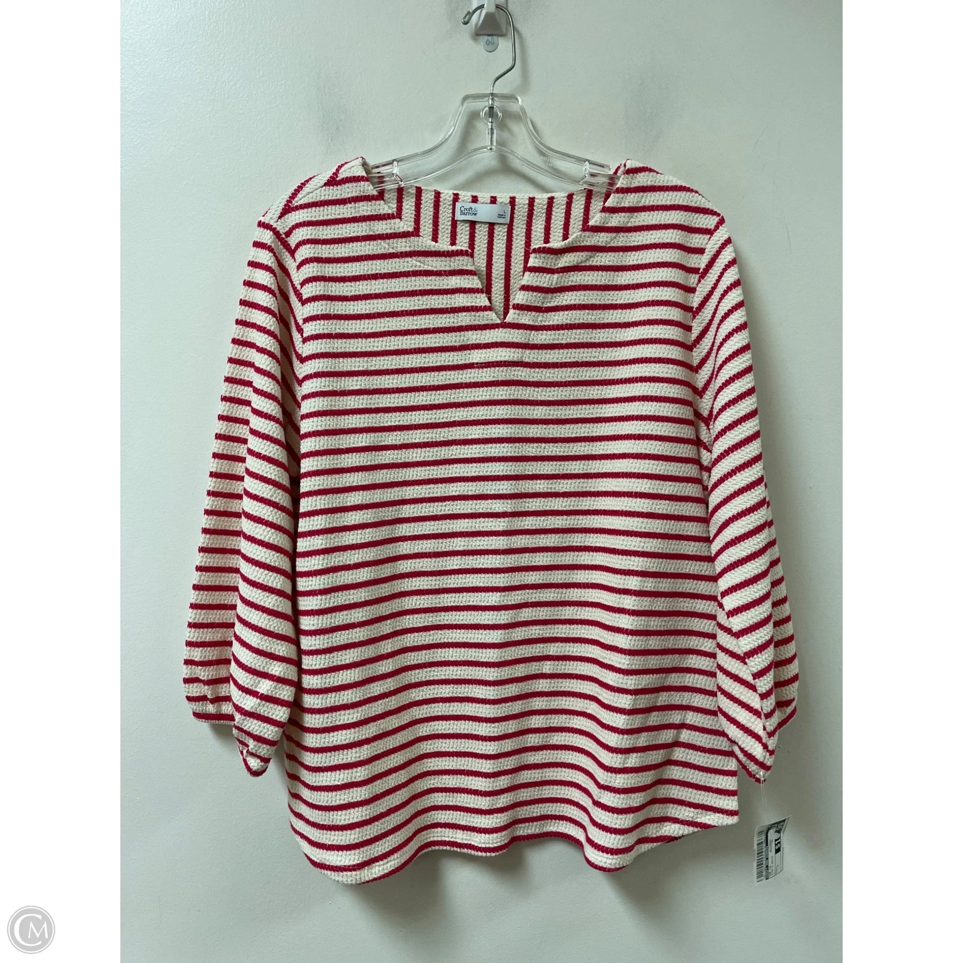 Top Long Sleeve By Croft And Barrow In Pink & White, Size: L